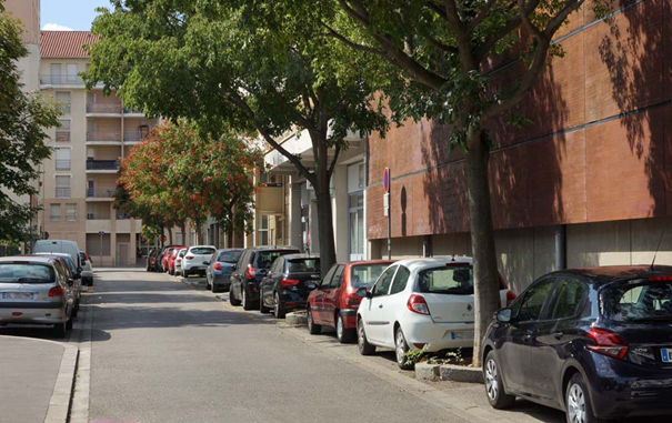 Elle commence entre deux immeubles modernes et anguleux, hauts de sept étages, celui du nord est daté de 1996, il est couvert de petits carreaux et appuyé sur des piliers. Il est adossé à deux ateliers, le second couvert de bois, puis le gymnase de la Guillotière en béton au toit oblique.