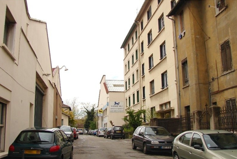 Le coté est est bordé d'ateliers dont certains en dents de scie, ils dessinent une petite cour et sont suivis par une maison individuelle au n°5.