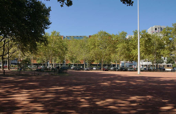 Le centre de la place est en gohrre, une double rangée de platanes en fait le tour et dessine une promenade. Quelques bancs de pierre y sont placés ainsi que des appuis de bois qui limitent le tour.
