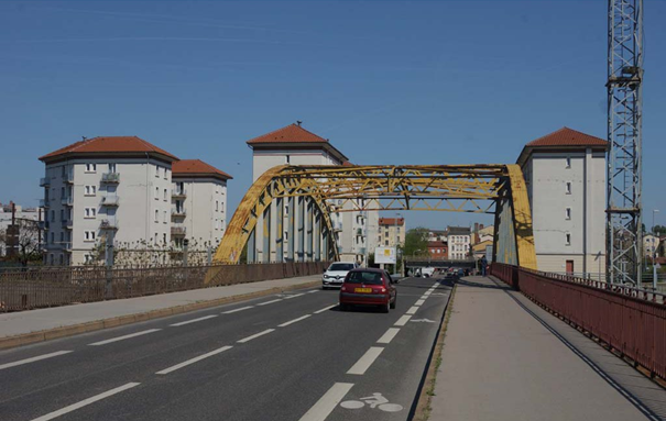 Un très long pont enjambe les voies, à l'ouest, il est soutenu par une structure de métal arrondie datée 1929. La vue est très dégagée, au nord, elle porte jusqu'à Fourvière et les monts d'Or.