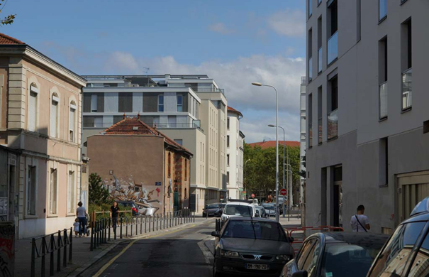 La rue est en voie de transformation, le terrain du 35 qui va jusqu'à la grande rue de la Guillotière a été rasé à l'exception d'une petite tour et d'une maison sur la grande rue.