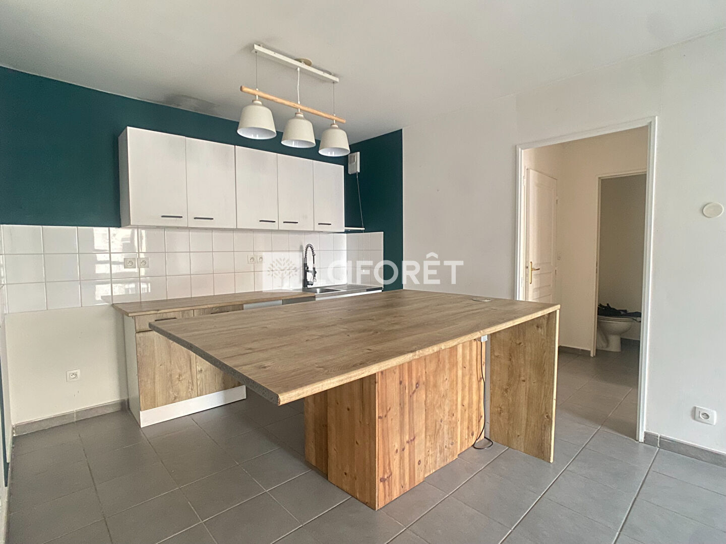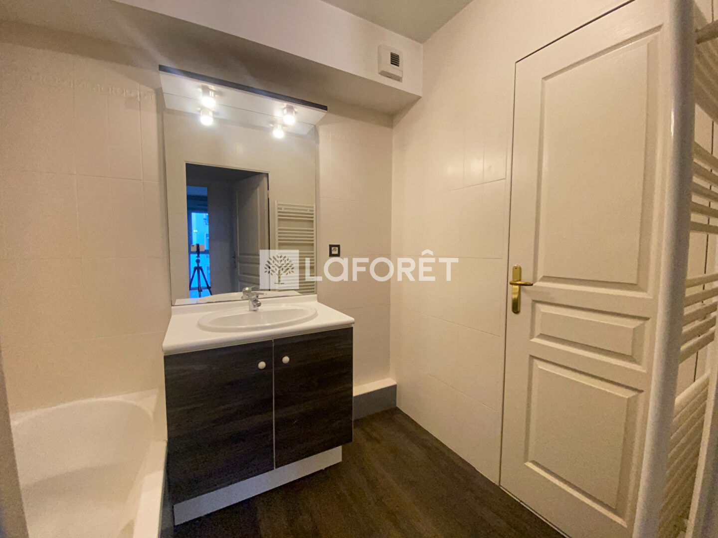 L'appartement est composé d'une entrée avec placard, d'une cuisine ouverte sur le séjour, d'une loggia, d'une chambre avec placard, d'une salle de bains avec placard et d'un WC séparé.