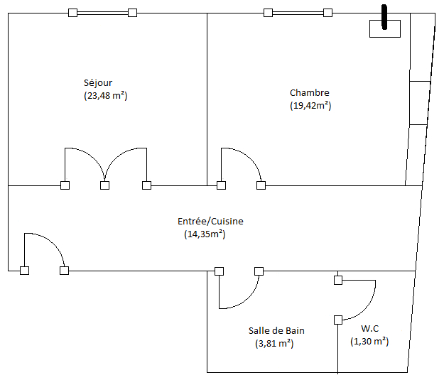 62 m² • 2 pièces • 1 chambre