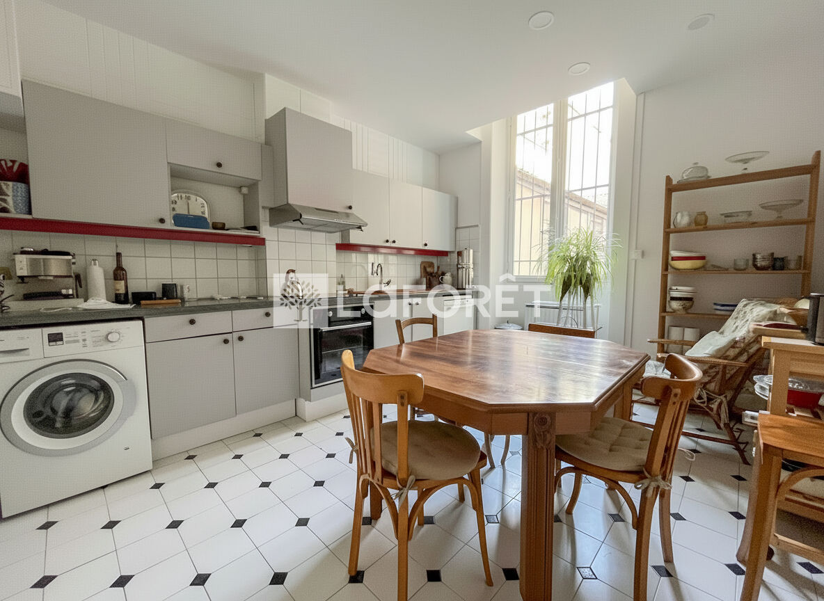 Situé au 1er étage avec ascenseur d'une copropriété de standing, ce bien de caractère séduit par son charme et sa belle luminosité. Il offre une spacieuse pièce de vie exposée plein sud, trois chambres, une cuisine dinatoire, une salle de bains ainsi que des toilettes indépendantes.