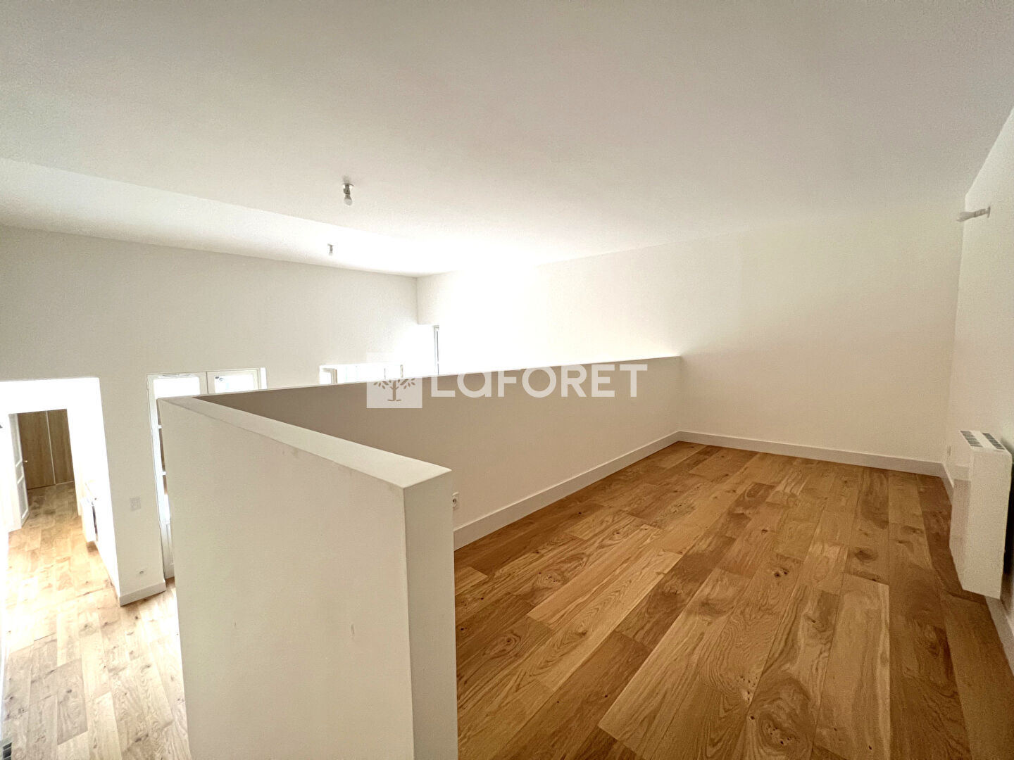 À l'étage, vous découvrirez une cuisine ouverte semi-équipée (plaque de cuisson, four, hotte) s'ouvrant sur un séjour lumineux et aux volumes généreux. Une mezzanine complète cet espace, idéale pour un bureau ou un coin détente.