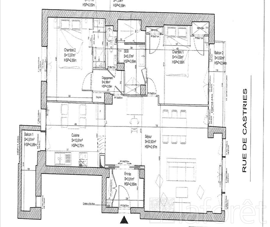 Dans une résidence de qualité et bien entretenue, appartement 3 pièces de 81,16 m², TRAVERSANT en étage élevé avec ascenseur. Il se compose d'une entrée avec rangements, d'un grand séjour de 31 m² avec BALCON, d'une cuisine aménagée et semi-équipée (plaques de cuisson + hotte) donnant accès à une loggia, de 2 chambres avec chacune sa salle d'eau attenante, et d'un WC indépendant. Stationnement en sous-sol possible en sus (150 € / mois).