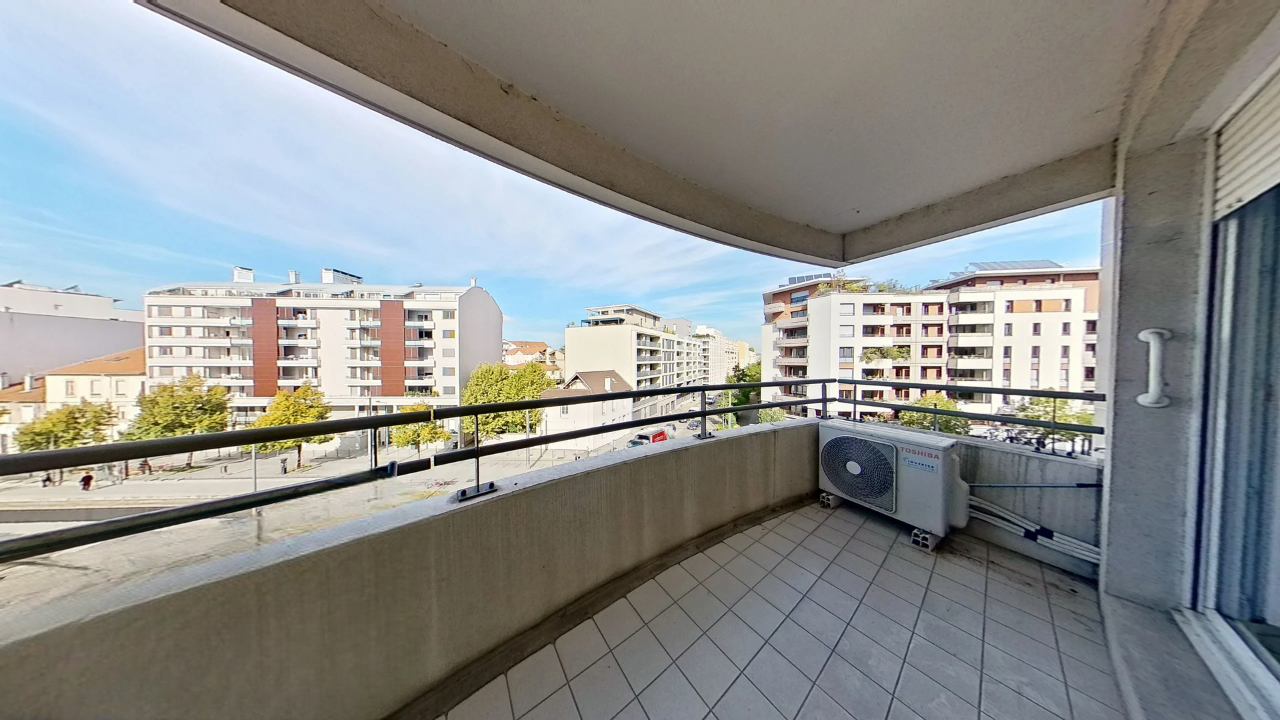 Il se compose d'une entrée avec placard, d'un séjour lumineux ouvrant sur un balcon de 6 m² avec vue dégagée et sans vis-à-vis, d'une cuisine aménagée (possibilité d'ouverture sur le séjour), de deux chambres dont une avec placard, d'une salle d'eau et de WC séparés.