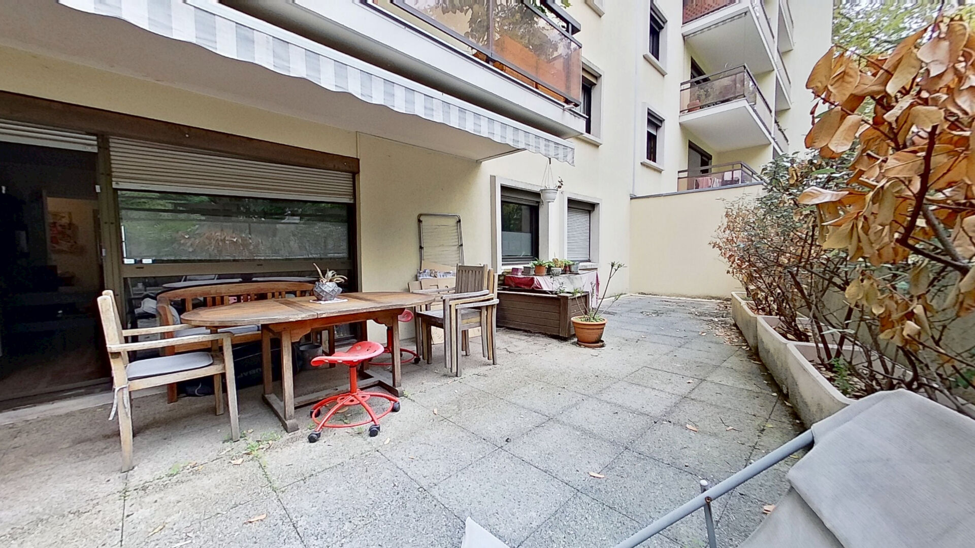 Il se compose d'un hall d'entrée, d'un lumineux séjour de 32 m² prolongé par une vaste terrasse de 39 m², ainsi que d'une cuisine indépendante, aménagée et équipée ouvrant sur un agréable jardin privatif arboré de 50 m².