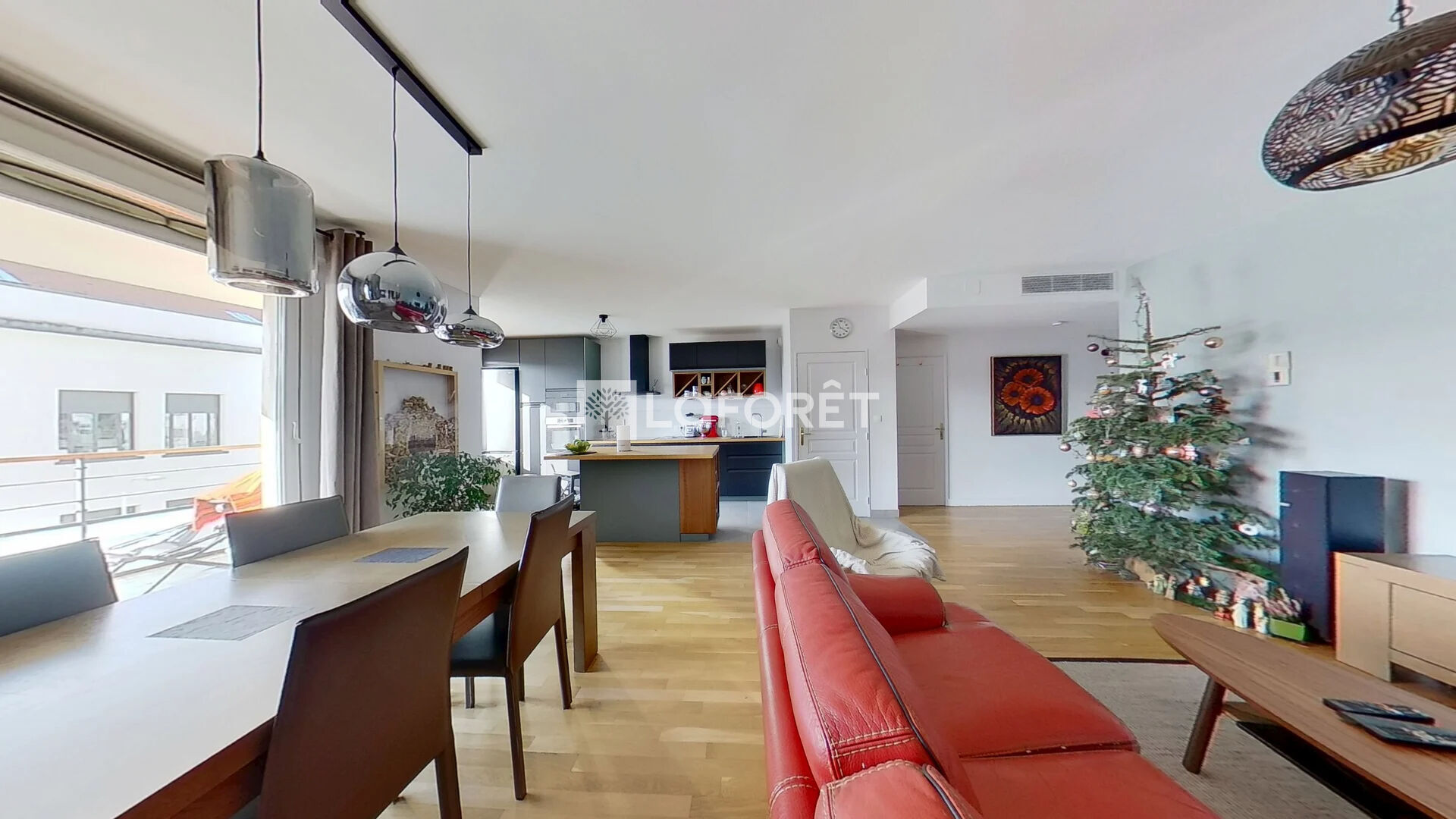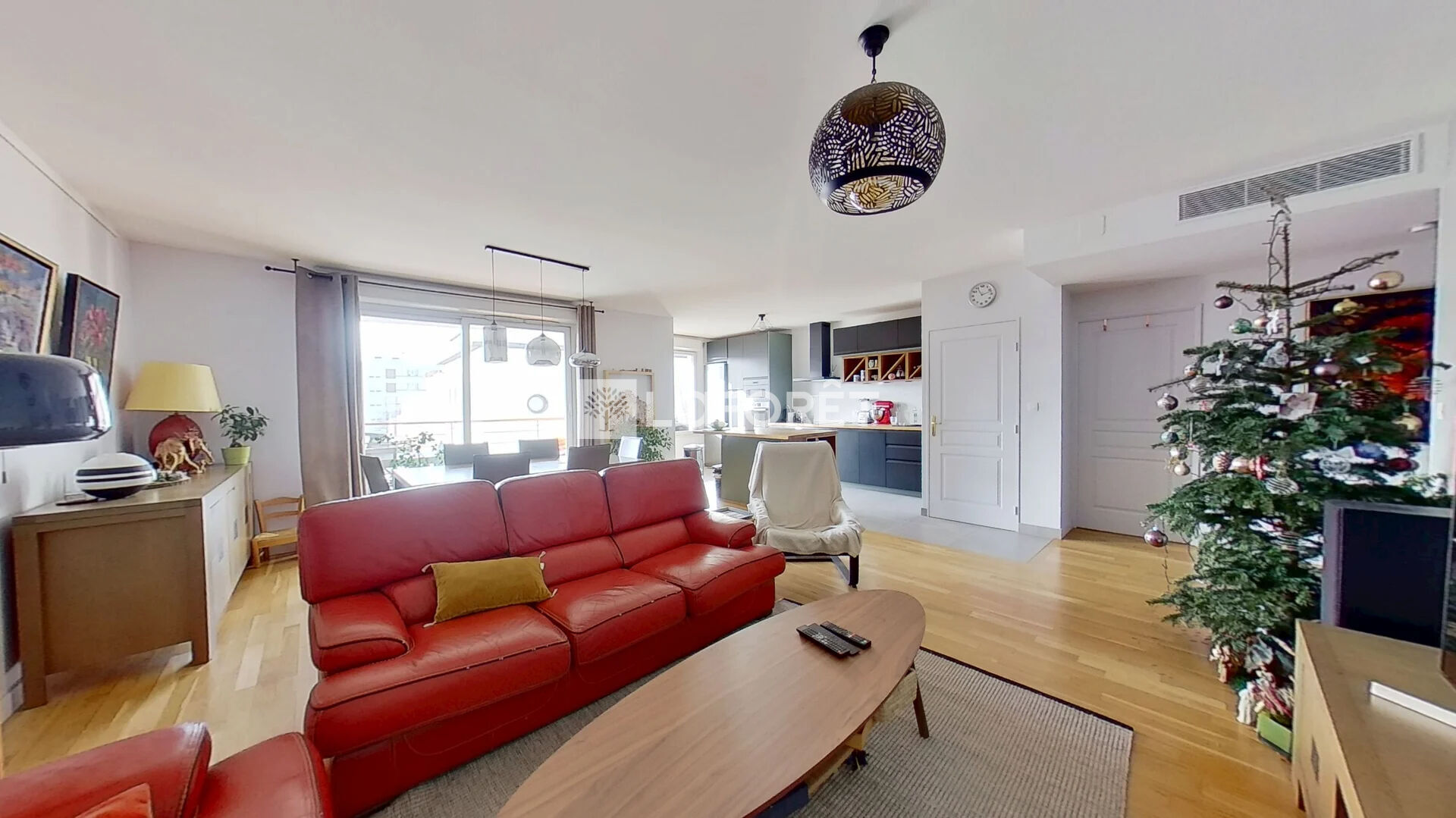 Le coin jour, très lumineux, se présente avec un grand séjour et sa cuisine ouverte, équipée et aménagé, représentant une surface de 47 m2 ouvert sur un balcon à vivre de 13,25 m².