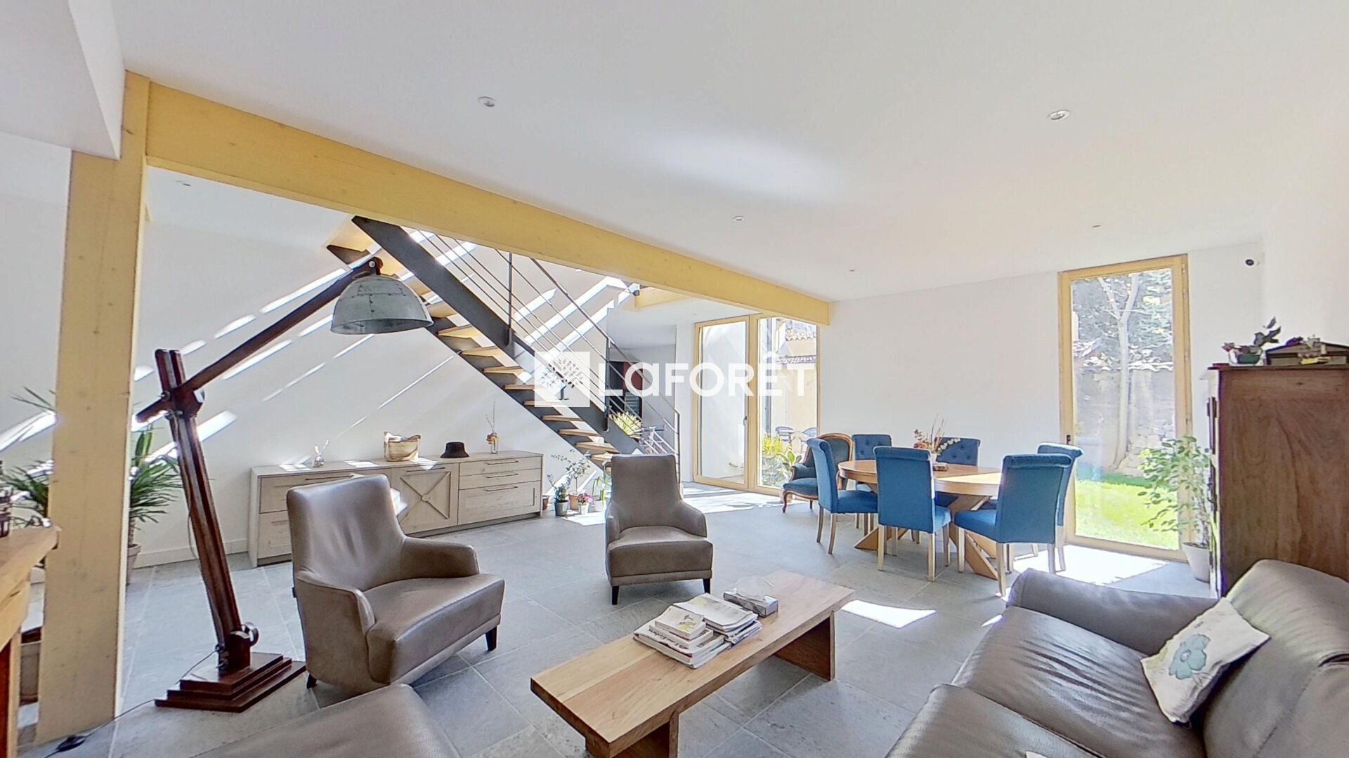 Dès l'entrée, on est séduit par la luminosité traversante et l'architecture épurée de cette maison en ossature bois. La pièce de vie principale, vaste et baignée de lumière grâce aux baies vitrées en double hauteur, réunit un salon confortable, une salle à manger conviviale, et une cuisine équipée sur-mesure haut de gamme avec îlot central.