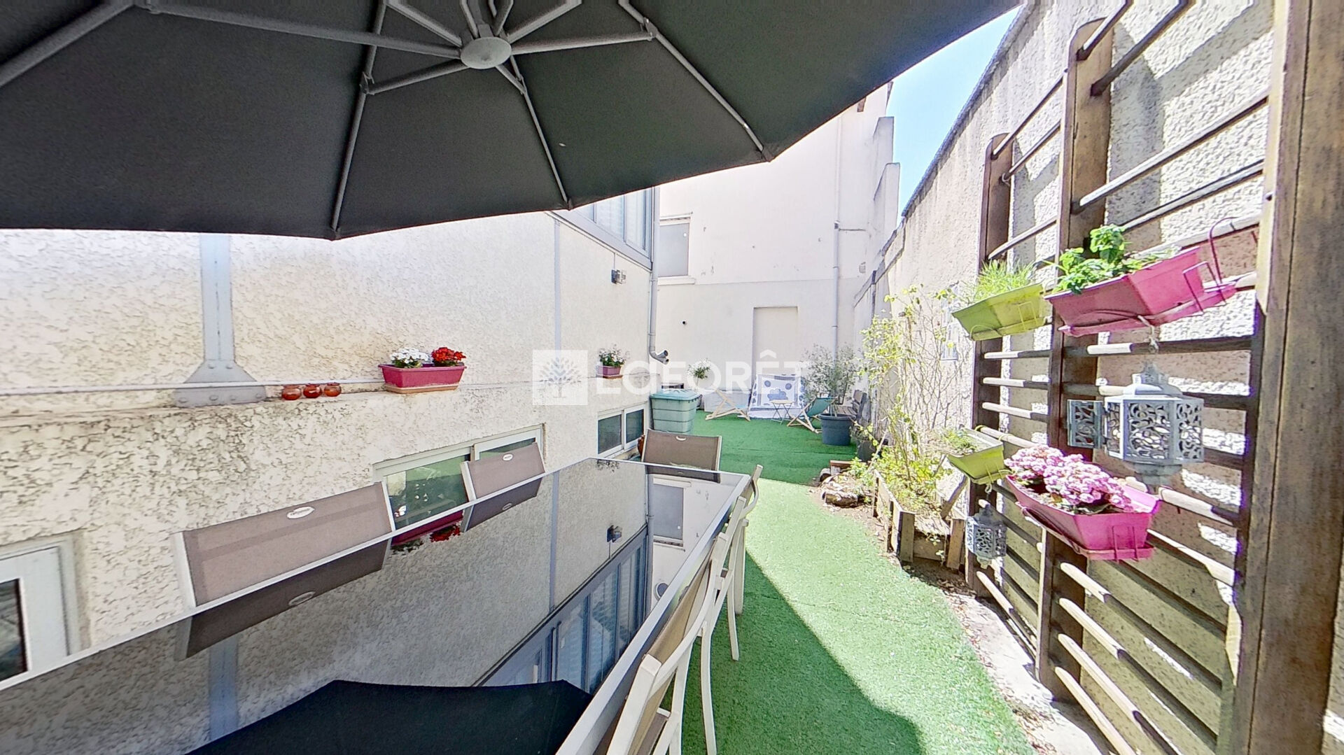 L'extérieur de 110 m², entièrement clos, s'ouvre directement depuis le séjour, créant une continuité entre les espaces intérieurs et extérieurs. Cet espace peut accueillir un salon d'été, un coin repas ou un espace de détente.