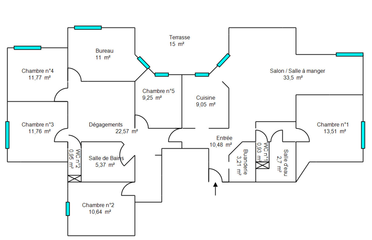 Il se compose d'un grand séjour/salle à manger, une cuisine en état neuf attenante, de 5 chambres dont une suite parentale, d'une partie enfants bien distincte avec salle de jeux, un grand bureau avec baie vitrée sur le jardin, et de pièces d'eaux en parfaits états. Nombreux rangements et dressings.