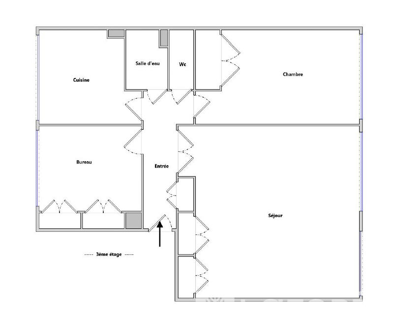 Il se compose d'une entrée en étoile distribuant les pièces de vie, un double séjour (orientation Sud Est), deux chambres, une cuisine, une salle d'eau et des wc séparés. Rafraichissement à prévoir (peintures + cuisine)