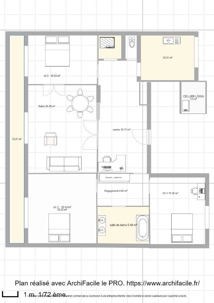 Il se compose d'une vaste entrée, d'un séjour double orienté Ouest, ouvrant sur un spacieux balcon de 14 m², idéal pour profiter des couchers de soleil. Une troisième chambre de 17 m² peut y être créée facilement.
