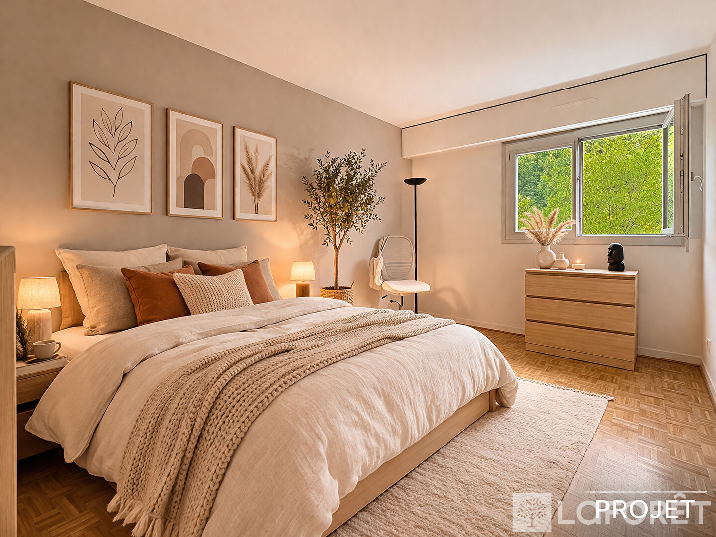 Une vaste entrée, une cuisine moderne indépendante avec cellier, un salon séjour sur un balcon de 8 m² environ, trois chambres confortables, deux espaces dressing aménagés, deux salles de bains.