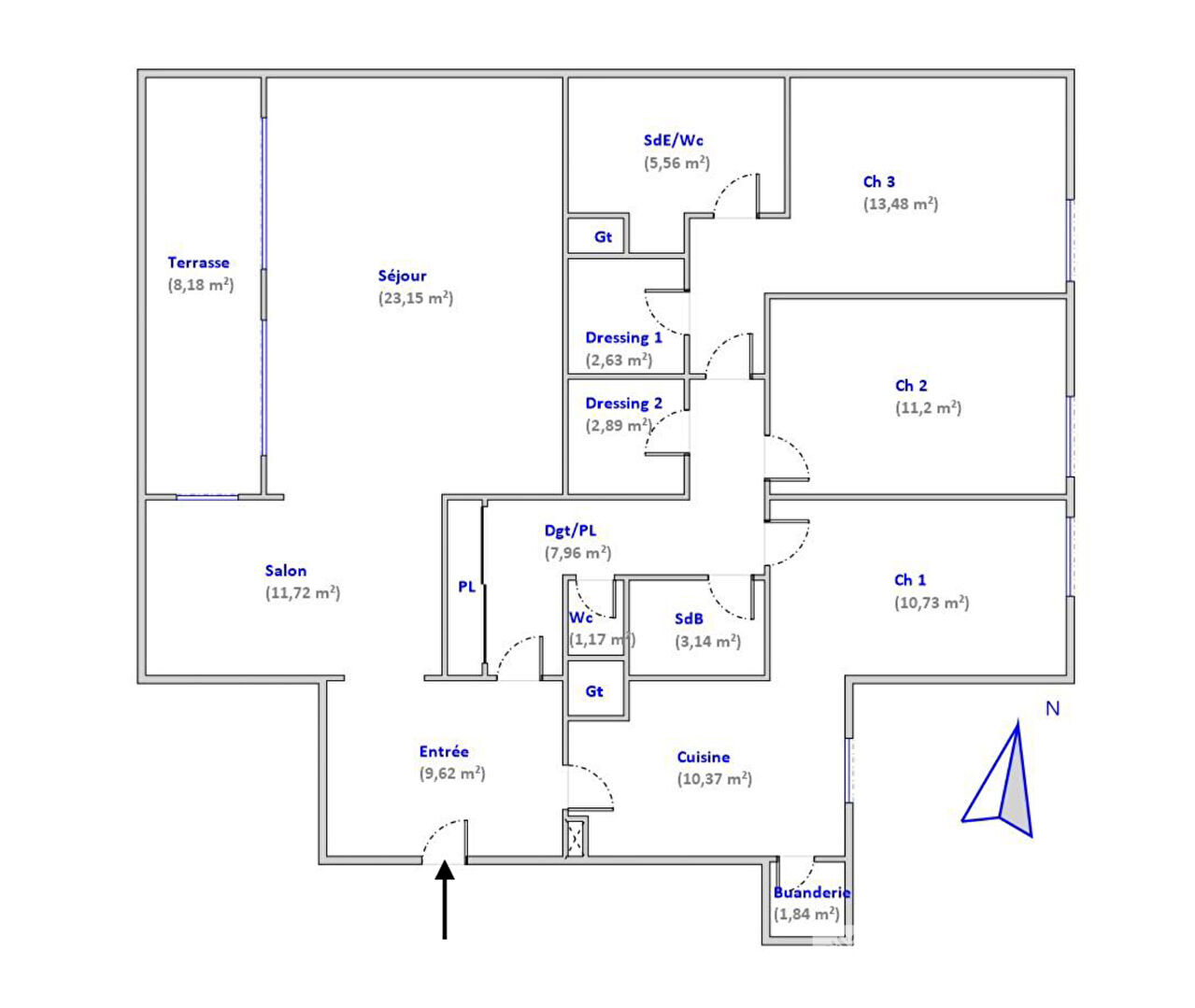115 m² • 4 pièces • 3 chambres