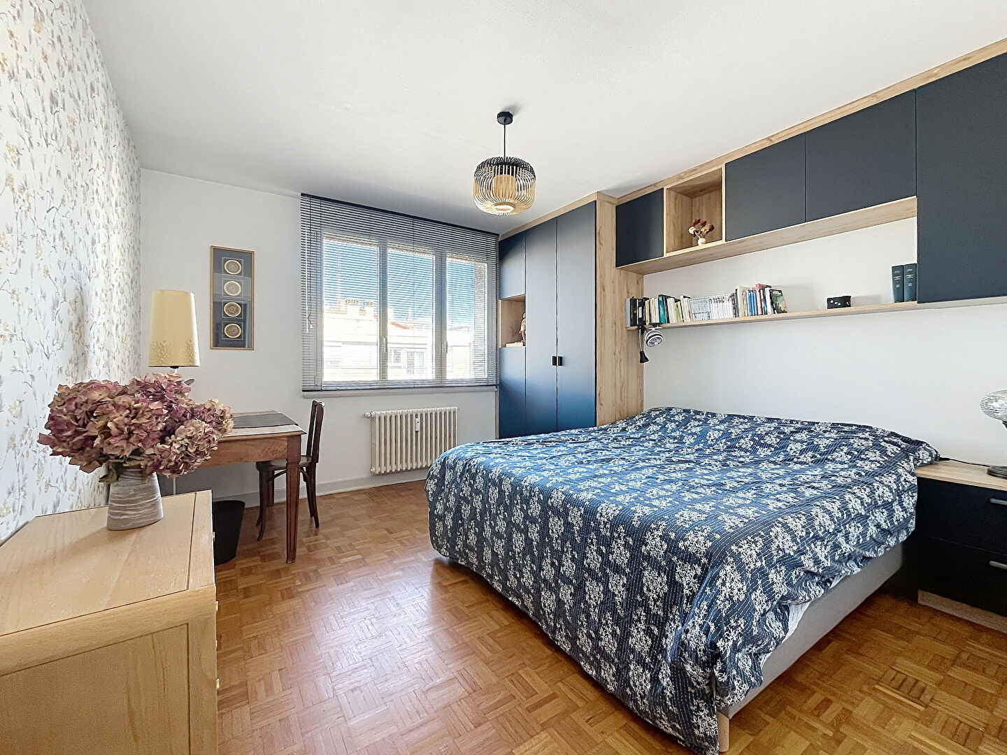 d'une grande entrée, d'un séjour avec balcon, d'une cuisine tout équipée, de trois chambres , d'une salle de bain et d'un wc indépendant.