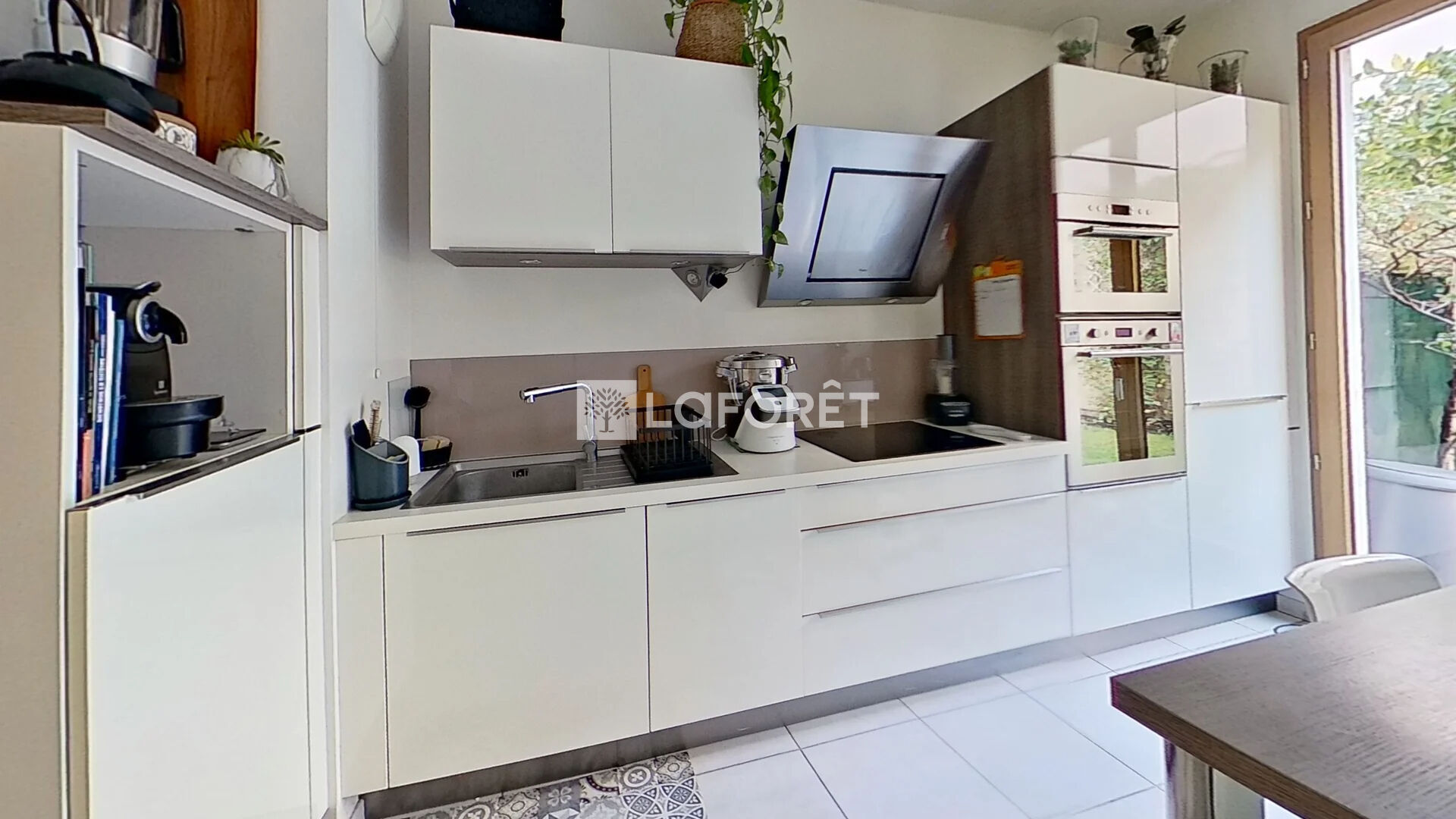 Il se compose d'un séjour lumineux avec cuisine équipée Mobalpa ouverte sur terrasse et jardin privatif sans vis-à-vis, de deux chambres de 13 m² avec parquet en chêne massif et placards, d'une salle de bains et de WC séparés.