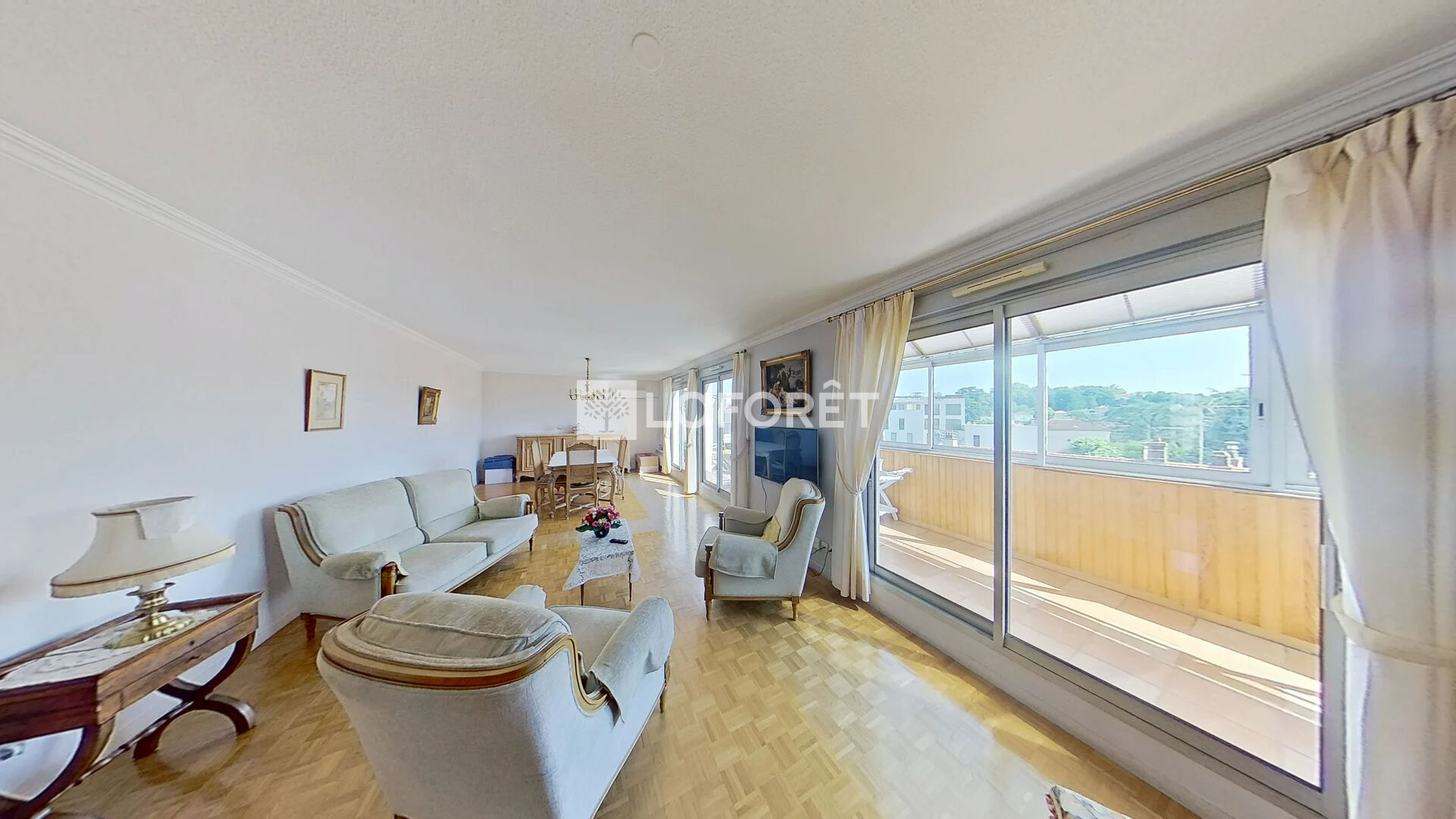 Situé au dernier étage d'un immeuble de 5 étages, ce spacieux appartement T6 de 137 m² offre un cadre de vie confortable et lumineux.