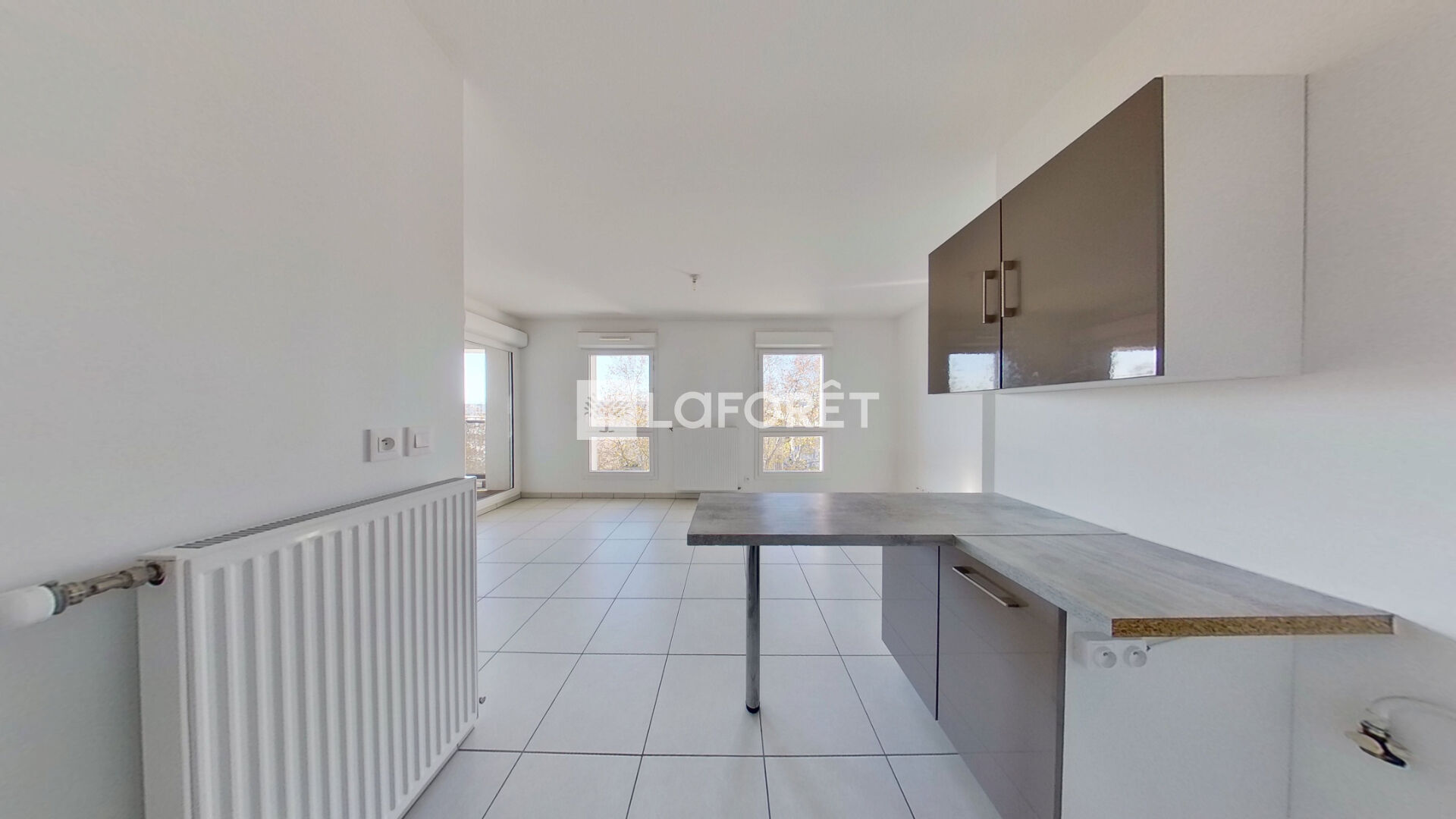 Un spacieux séjour avec cuisine meublée - équipée, ouvrant sur un balcon,