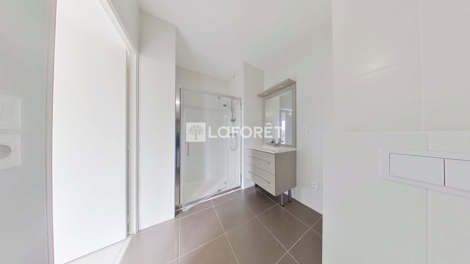 Très belle de salle bain moderne ( douche, meuble d'équipement, bandeau lumineux vasque et rangements ) et WC suspendu.