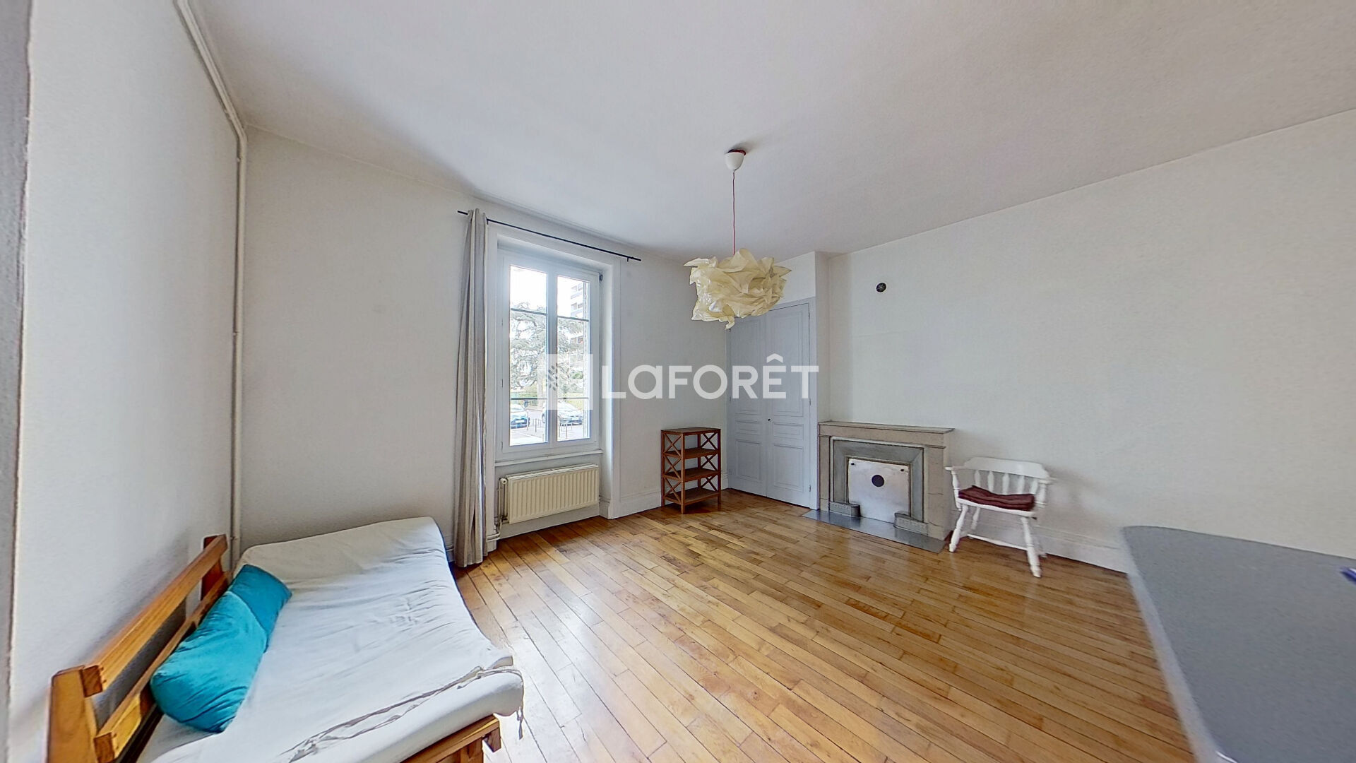 Au rez-de-chaussée d'un immeuble des années 1940, ce T2 traversant Est/Ouest se compose d'une pièce de vie de 25 m² et espace cuisine ouvert, avec parquet ancien et cheminée, d'une chambre avec dressing, d'une salle de bains et de WC séparés.