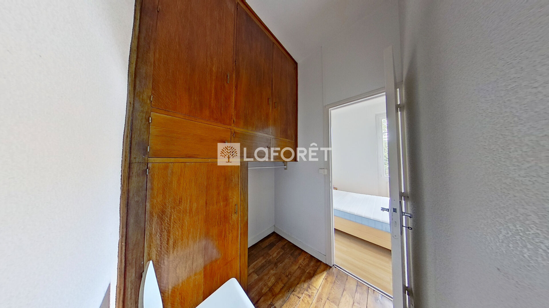 La chambre donne sur un jardin de copropriété calme et arboré, accessible aux résidents. Copropriété intimiste de 8 appartements.