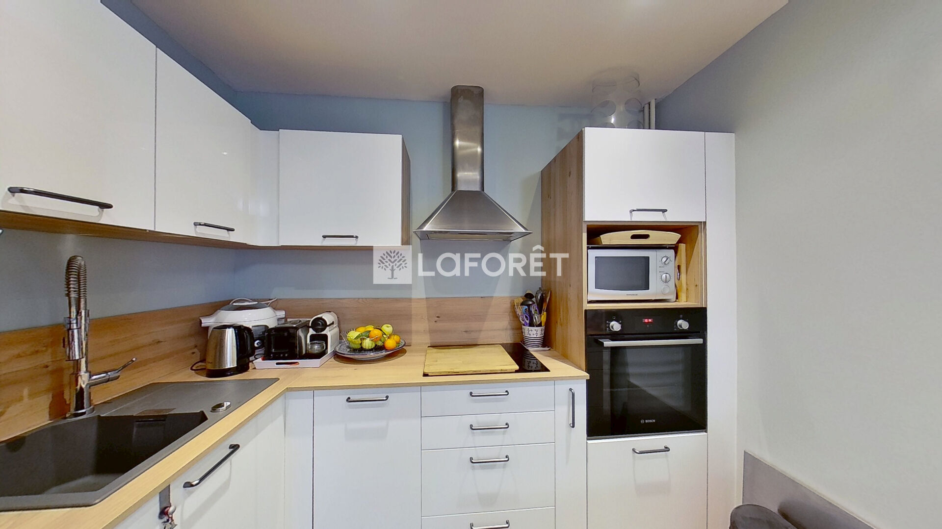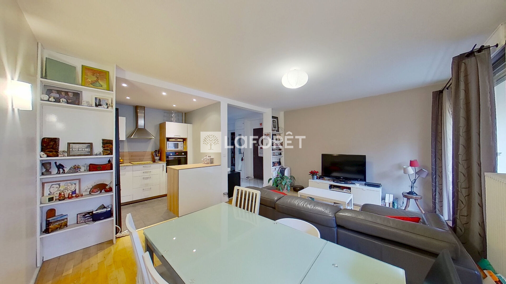 Il se compose d'une entrée spacieuse permettant l'installation de nombreux rangements, d'un séjour de 27 m² ouvrant sur un balcon exposé ouest, ainsi que d'une cuisine ouverte entièrement aménagée et équipée, rénovée en 2024.
