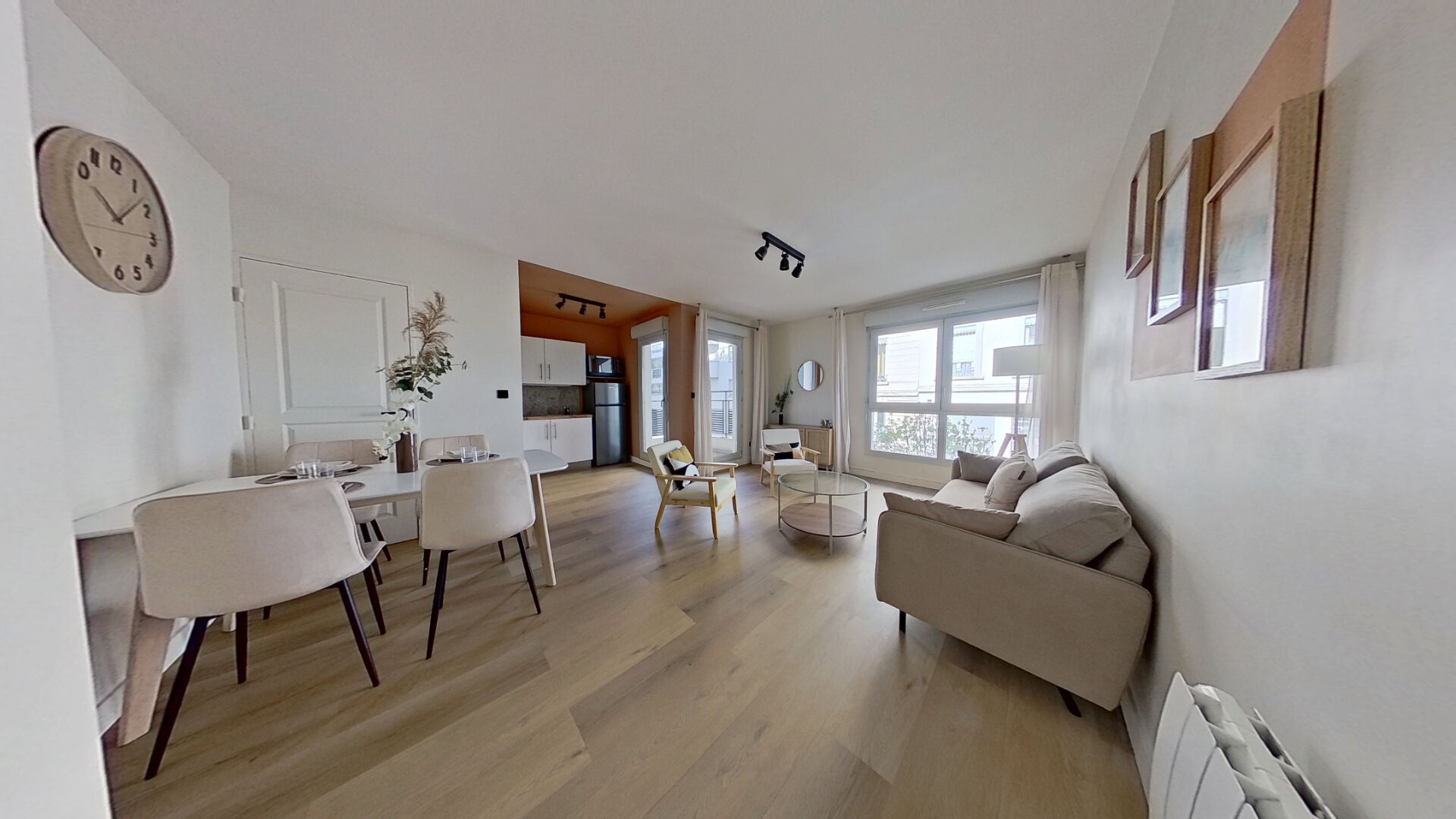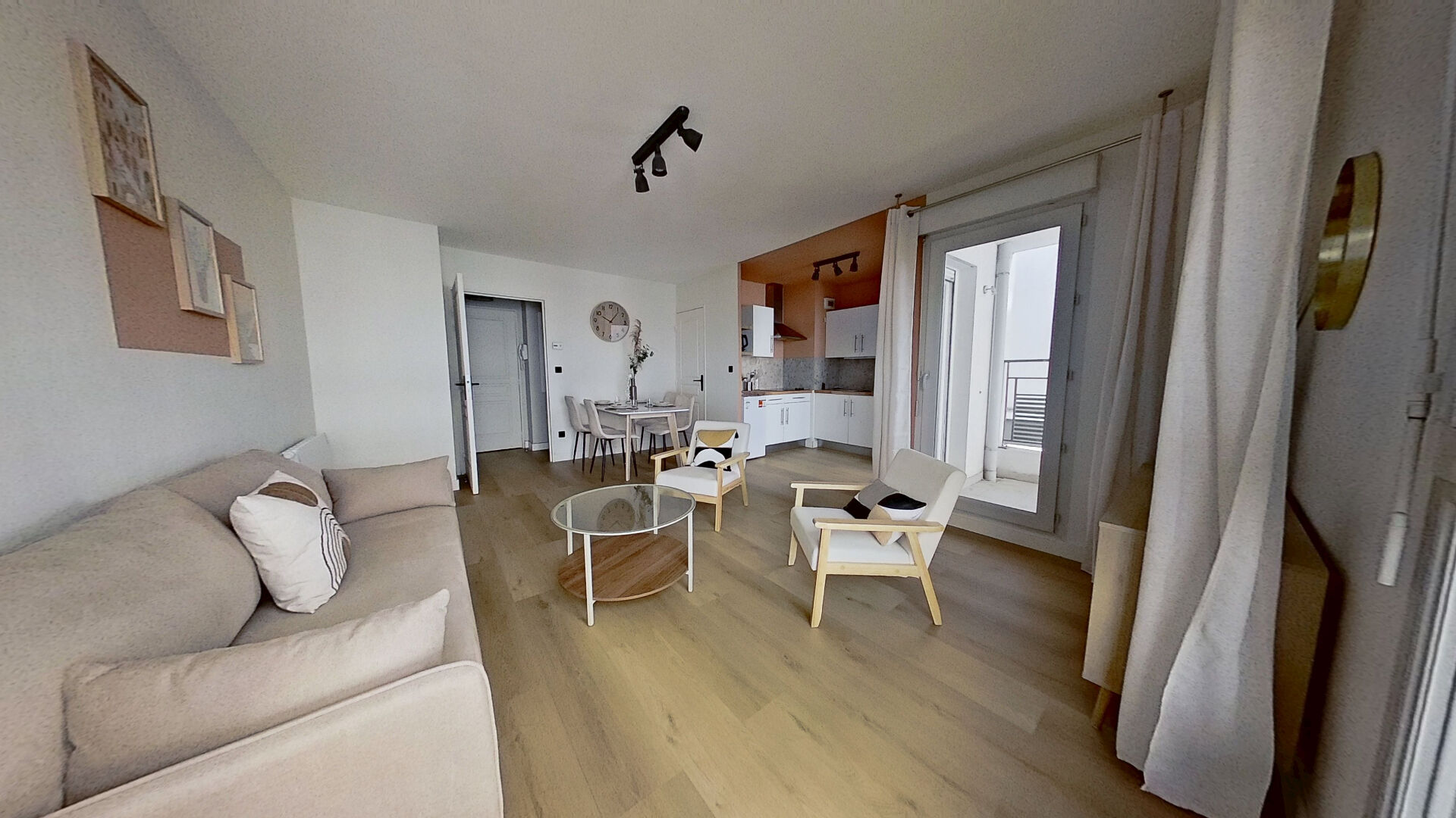 Appartement T2 meublé de 43,72 m², situé au 1er étage avec ascenseur, comprenant une entrée