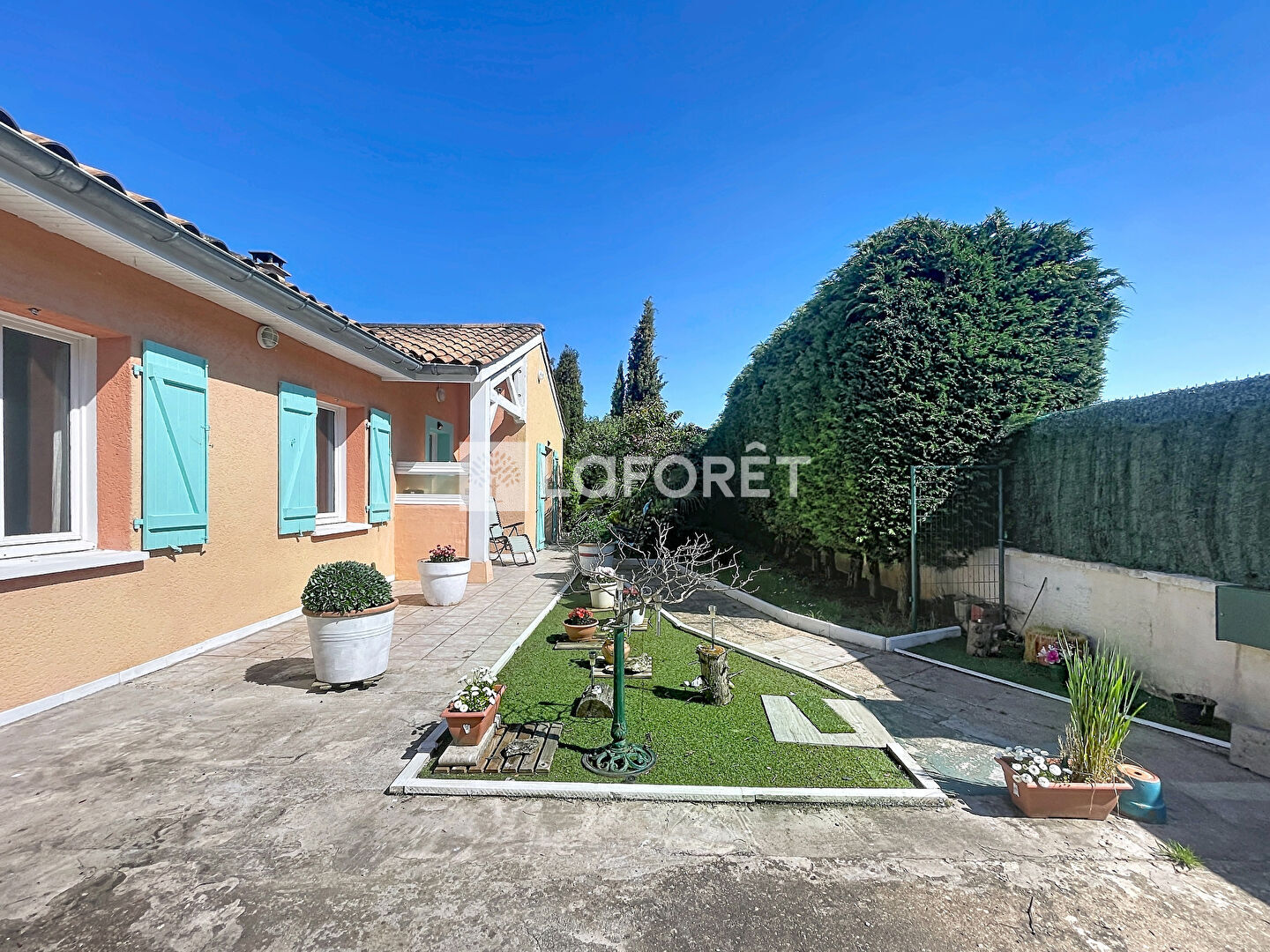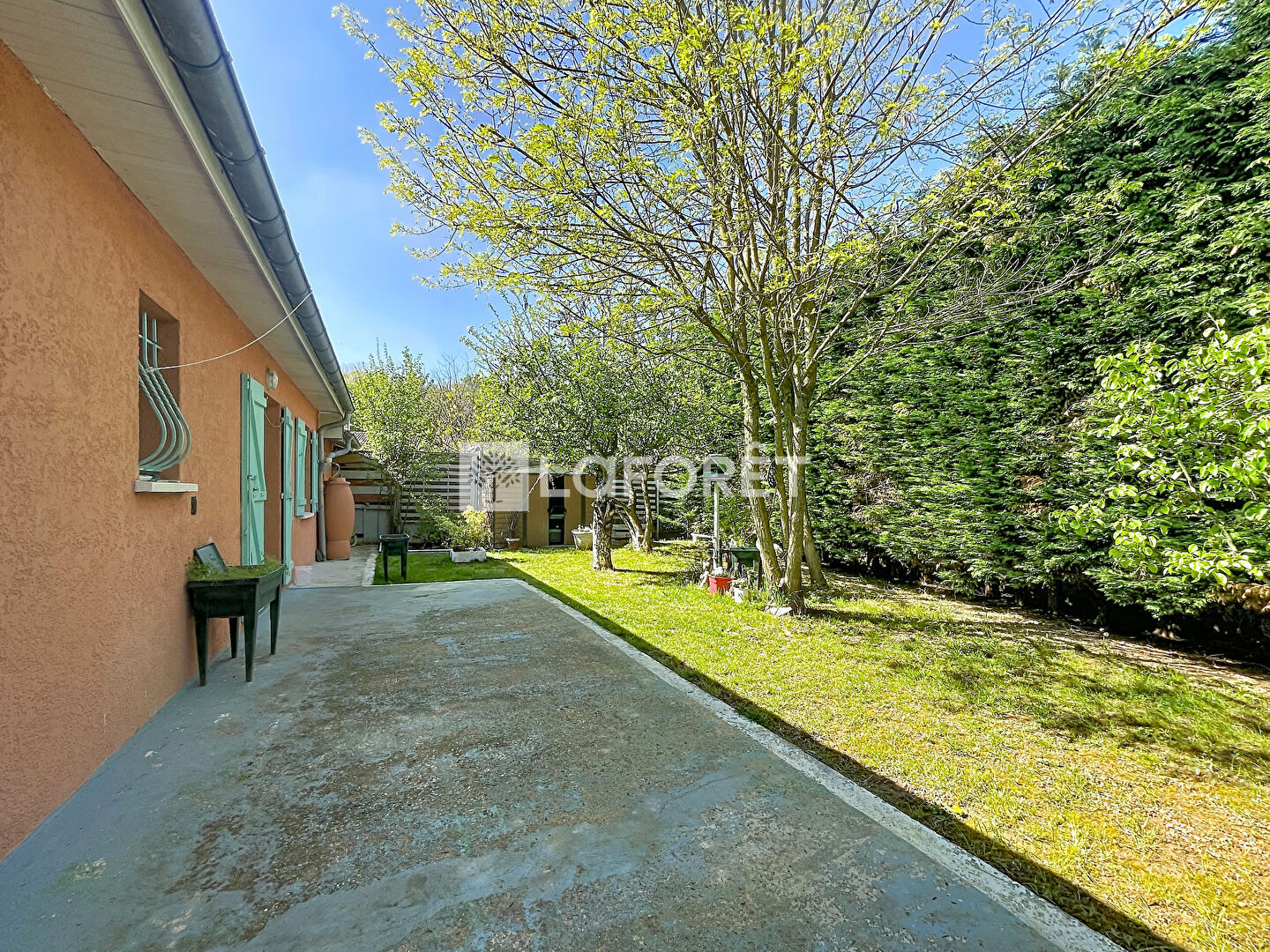 D'une superficie de 106m² habitables environ, elle est édifiée sur un terrain plat, clos et arboré de 675m².