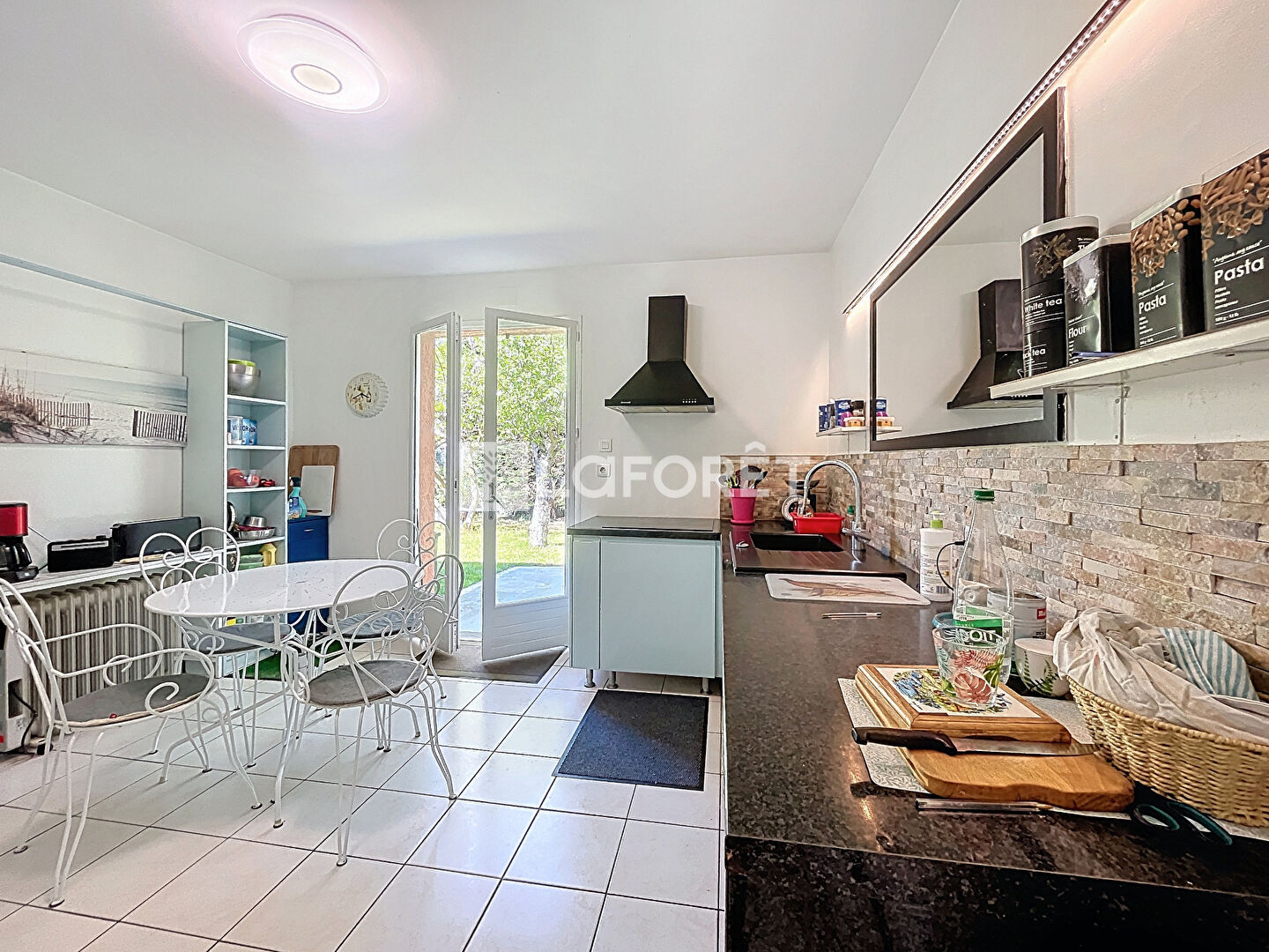 Dès l'entrée, vous découvrirez une pièce de vie spacieuse et lumineuse orientée Nord Est Sud avec une cheminée à insert et une climatisation ainsi qu' une cuisine aménagée et équipée qui vous permettront d'accéder à la terrasse.