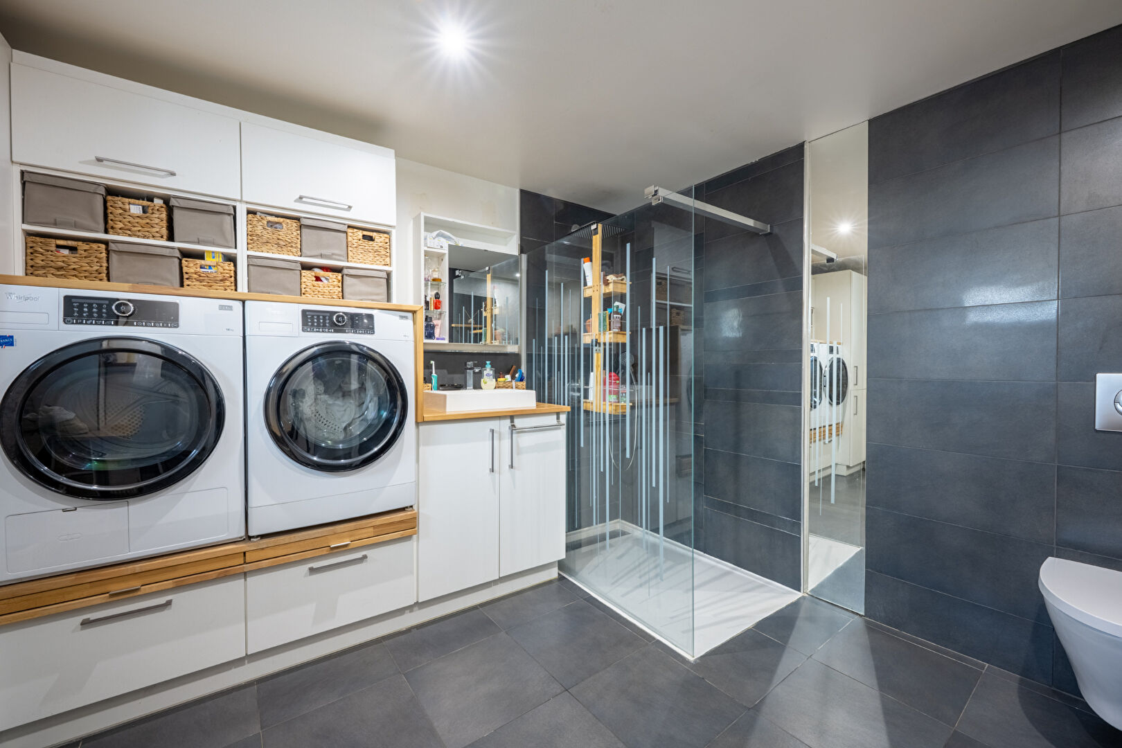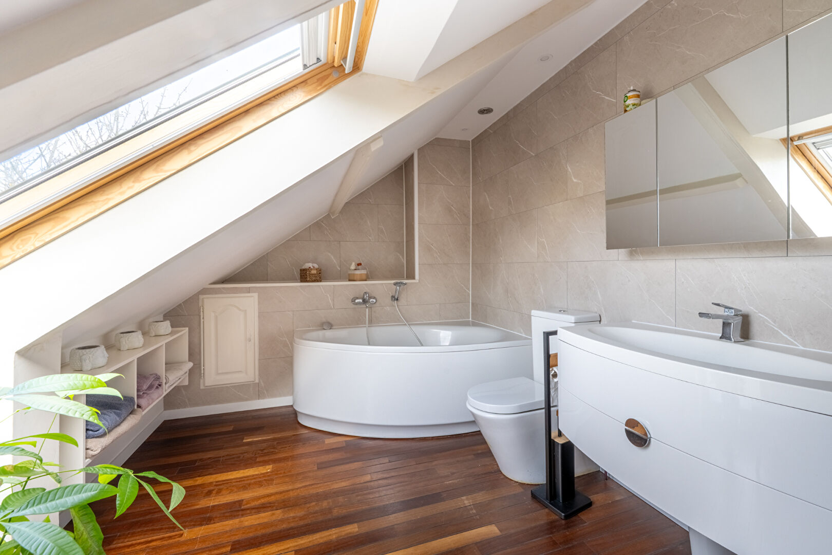 Au premier étage, une salle de bains avec wc, deux chambres dont une avec dressing. Au dernier étage, l'espace des enfants, composé d'une pièce commune type salle de jeux/bureau et deux chambres.