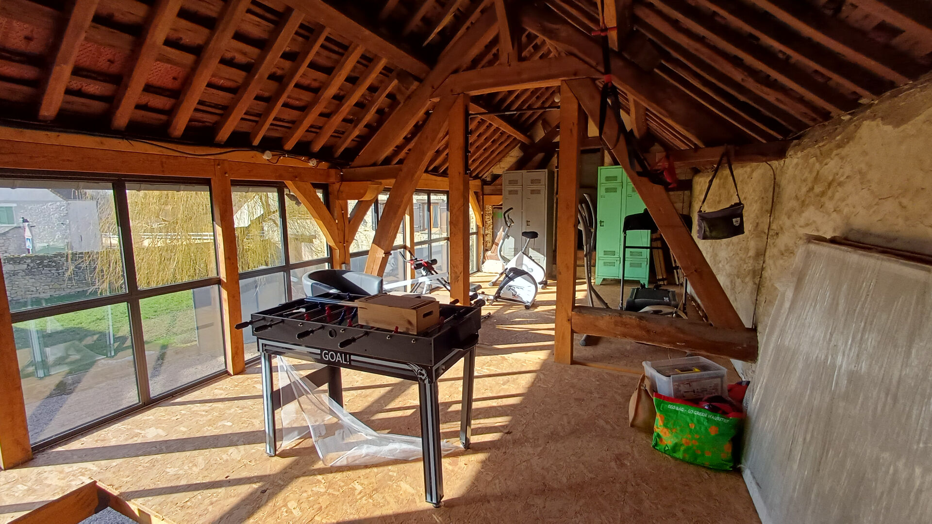 Vous y découvrirez un espace de vie de 55m2 composé d'une cuisine aménagée et équipée, un salon avec poêle à granulés et un espace bar/détente. Une salle de bains familiale avec espace buanderie.