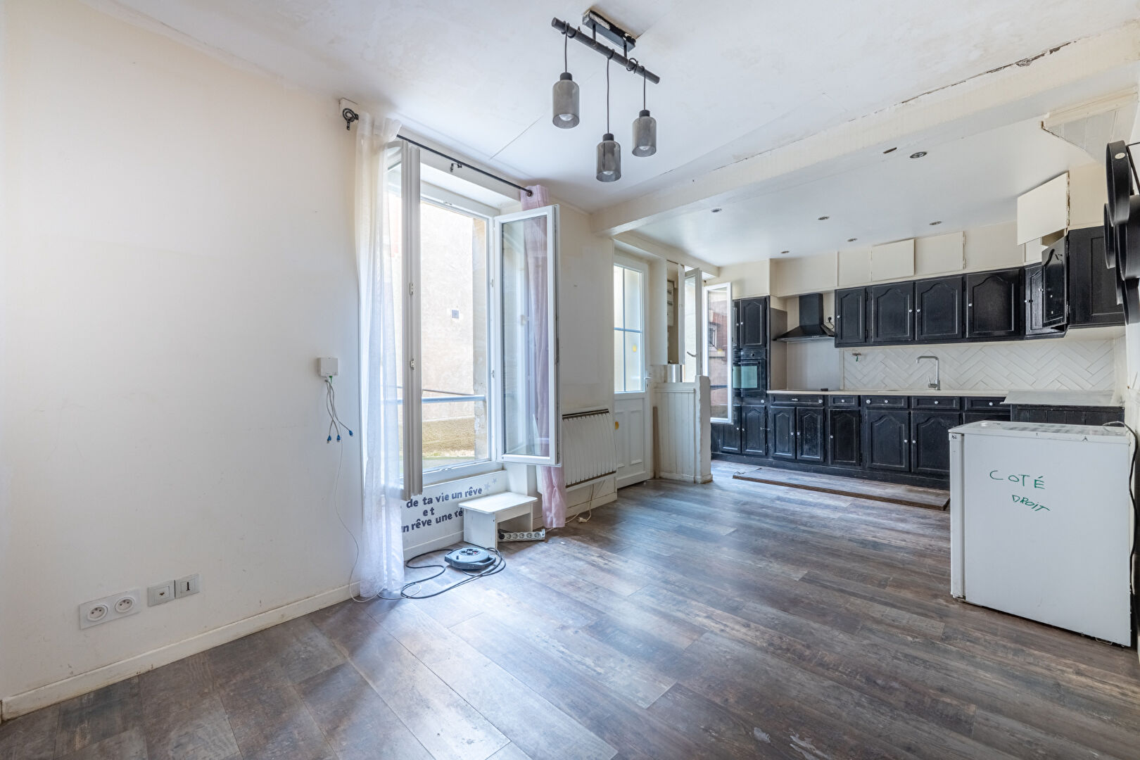 maison de ville offrant, cuisine ouverte sur séjour, wc, à l'étage 1 chambre, un bureau et une salle de bain, au 2e étage une chambre.