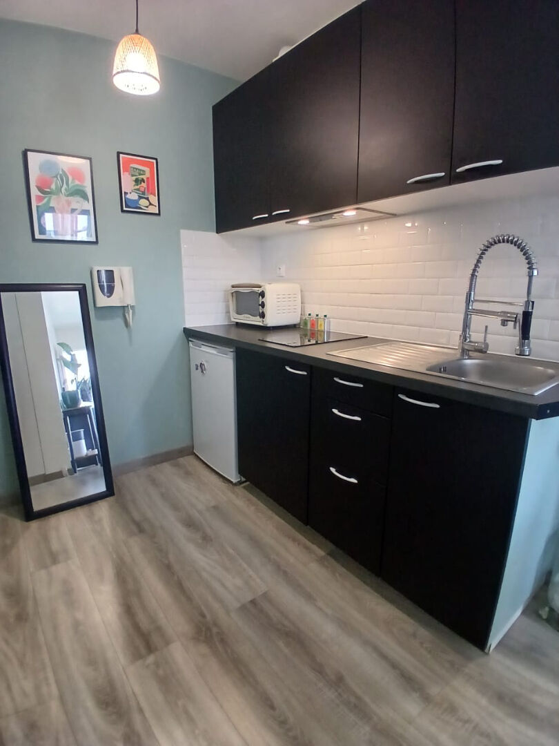 Appartement à la location MEUBLE, avec cuisine aménagée et équipée, séjour , cellier/buanderie, une chambre, salle d'eau.