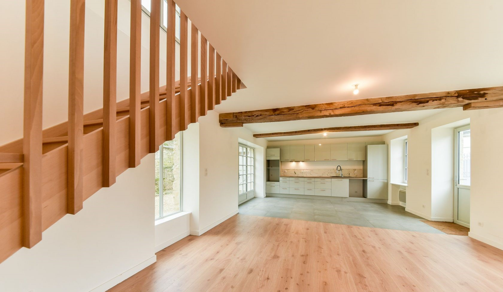 Au rez-de-chaussée : Une cuisine aménagée et équipée ouverte /sur salon / salle à manger (pièce à vivre de 41 m²) , un W.C,