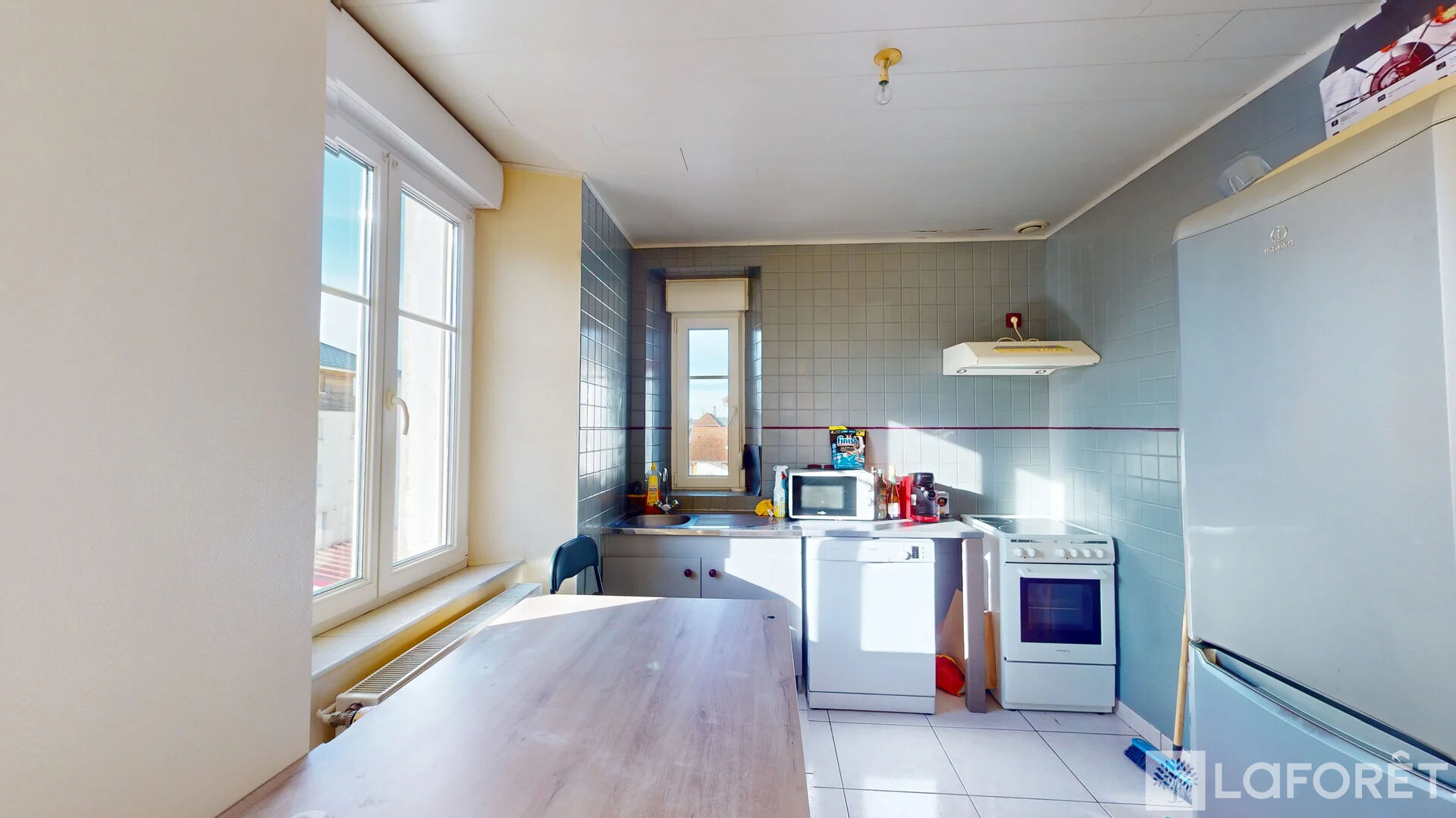 Appartement comprenant lumineuse pièce de vie de plus 48m2, dégagement, deux belles chambres, salle de bains, WC et cellier. En annexe : une cave.