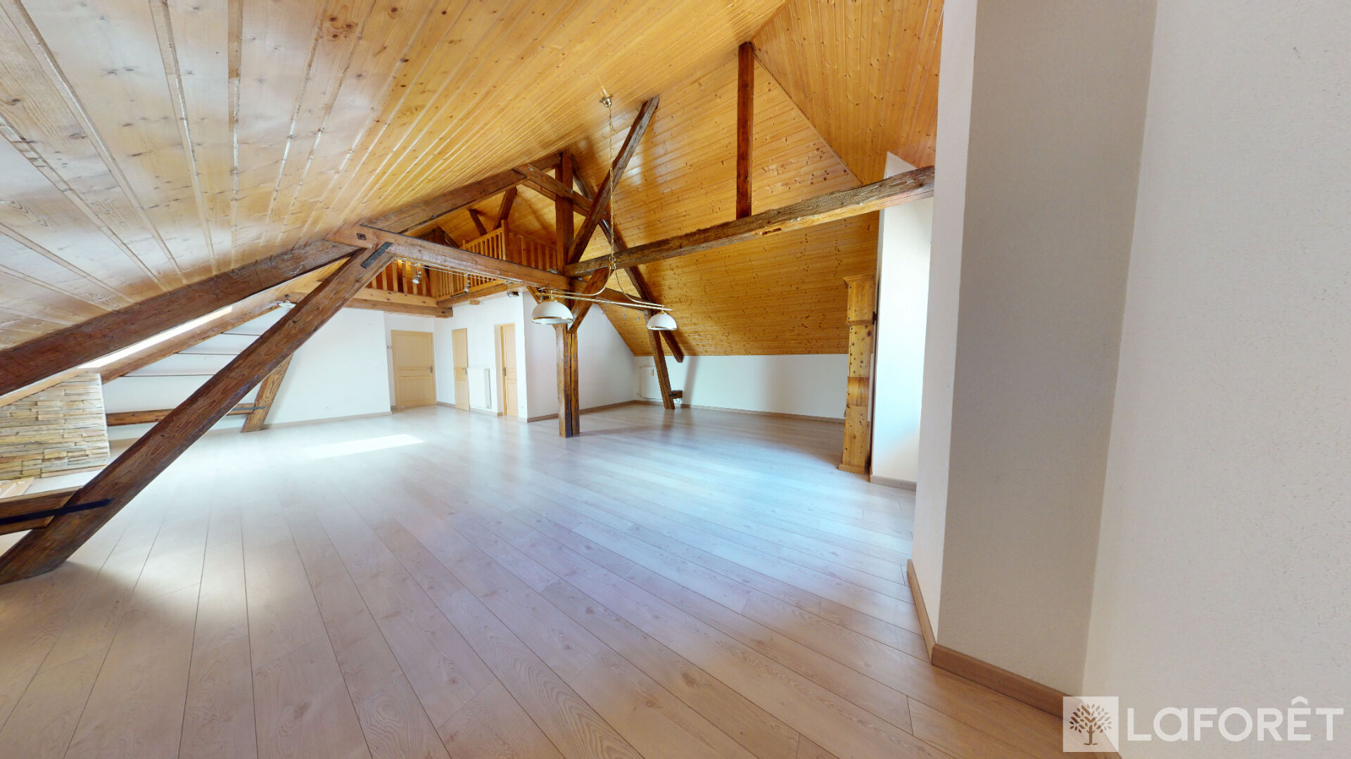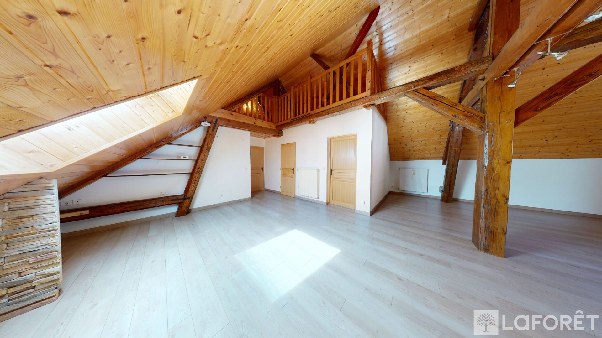 A l'étage : deux très grandes chambres, une salle d'eau/wc et une sublime mezzanine de plus de 40m2.