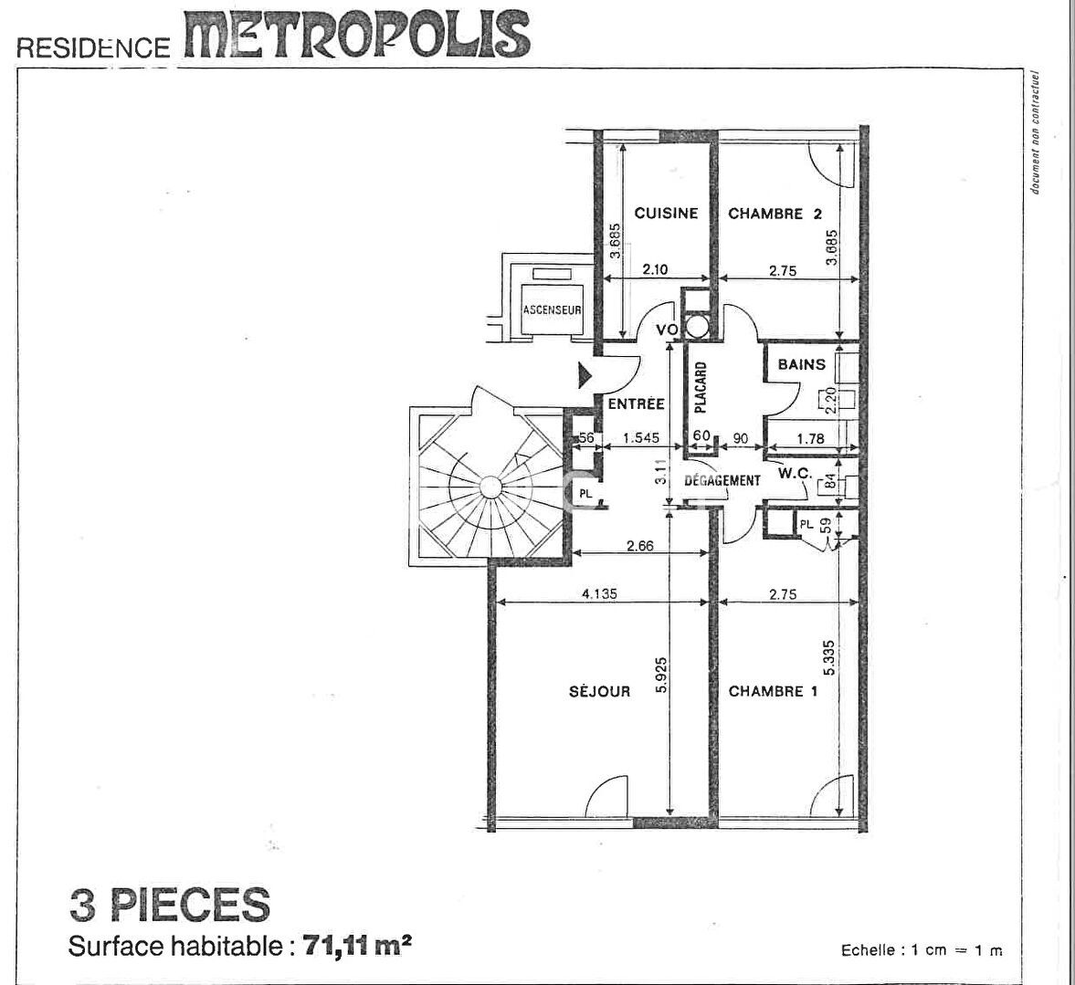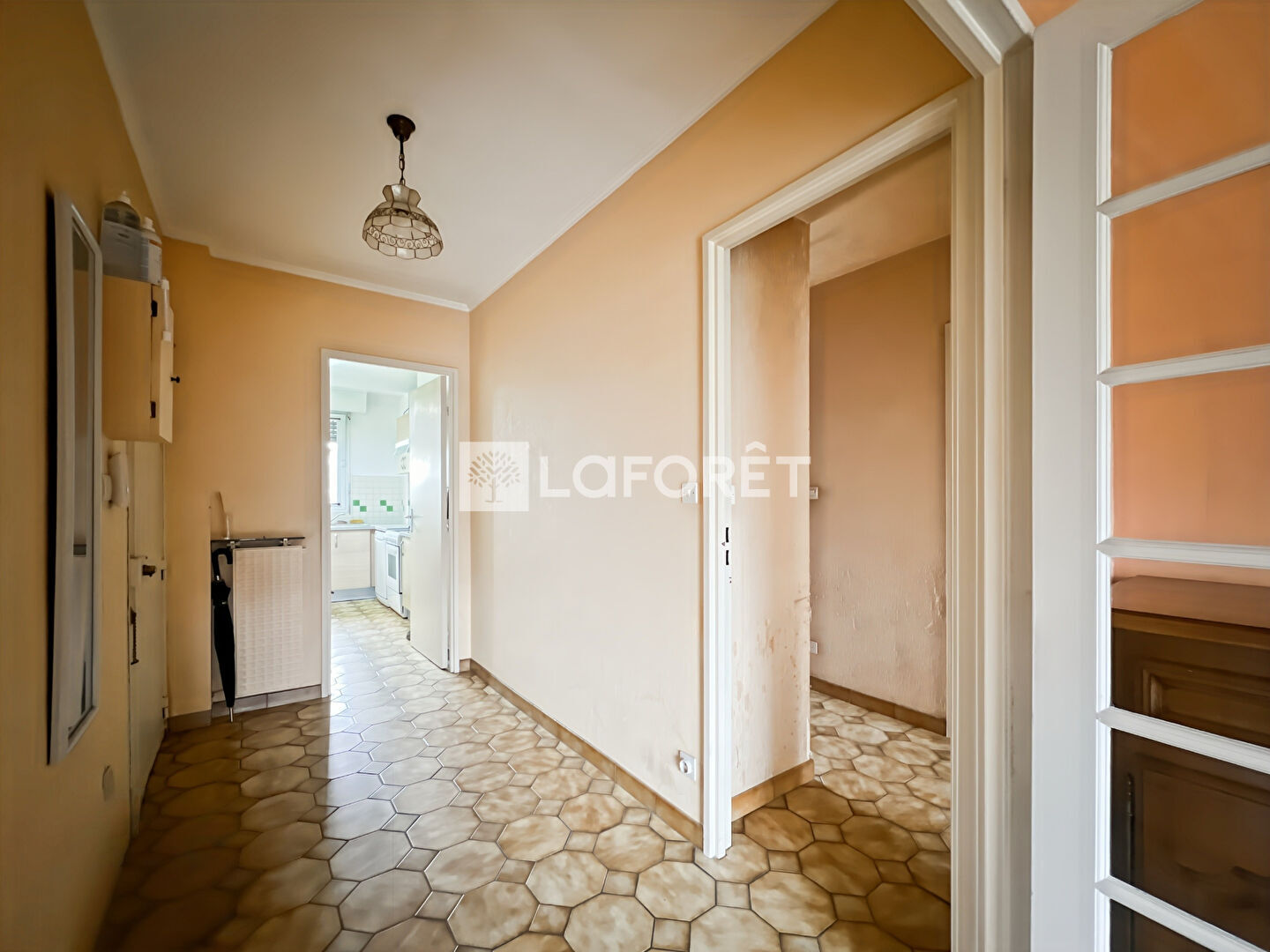 Il se compose d'une entrée desservant un séjour lumineux, offrant un cadre de vie agréable et un espace facile à aménager selon vos envies. La cuisine indépendante, permet de conserver une organisation fonctionnelle et bien distincte. Côté nuit, vous trouverez deux chambres de belles surfaces, confortables et bien proportionnées, qui laissent place à différentes possibilités d'aménagement. Une salle d'eau ainsi qu'un WC séparé complètent l'ensemble, avec une distribution simple et efficace au quotidien. L'appartement nécessite des travaux de remise au goût du jour, mais il présente une base saine et un agencement cohérent. Il constitue une bonne opportunité pour un acquéreur souhaitant créer un intérieur à son image, sans contrainte majeure de redistribution.