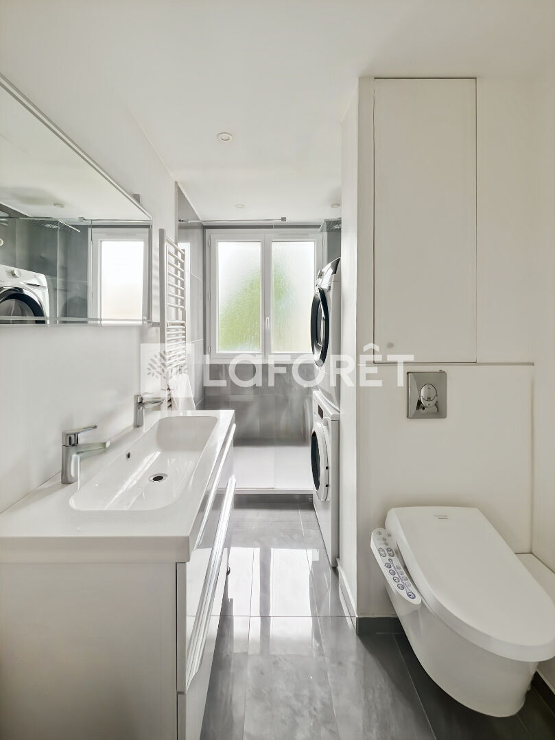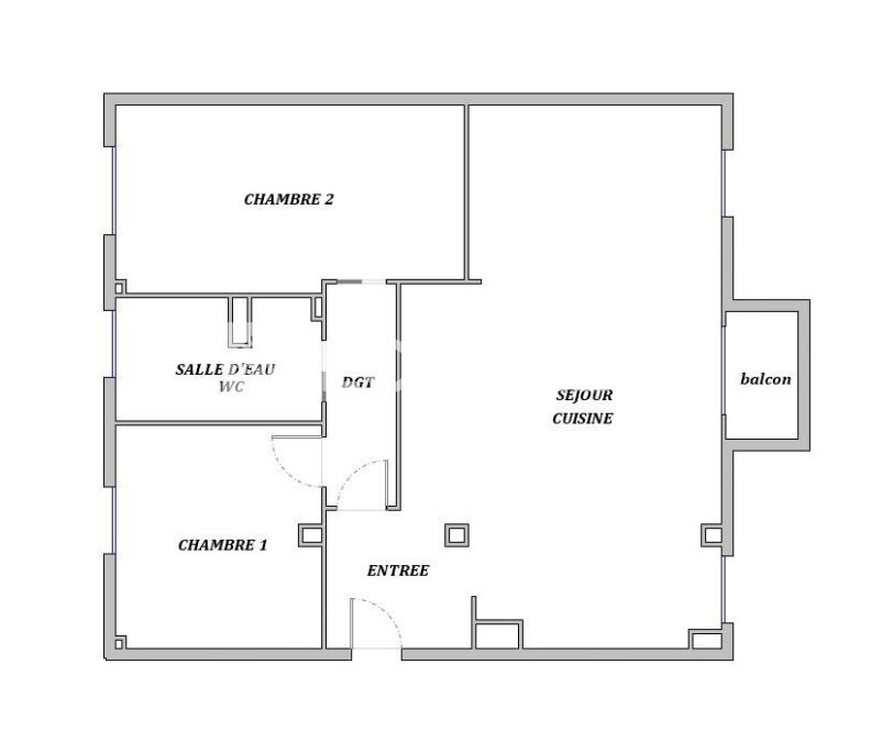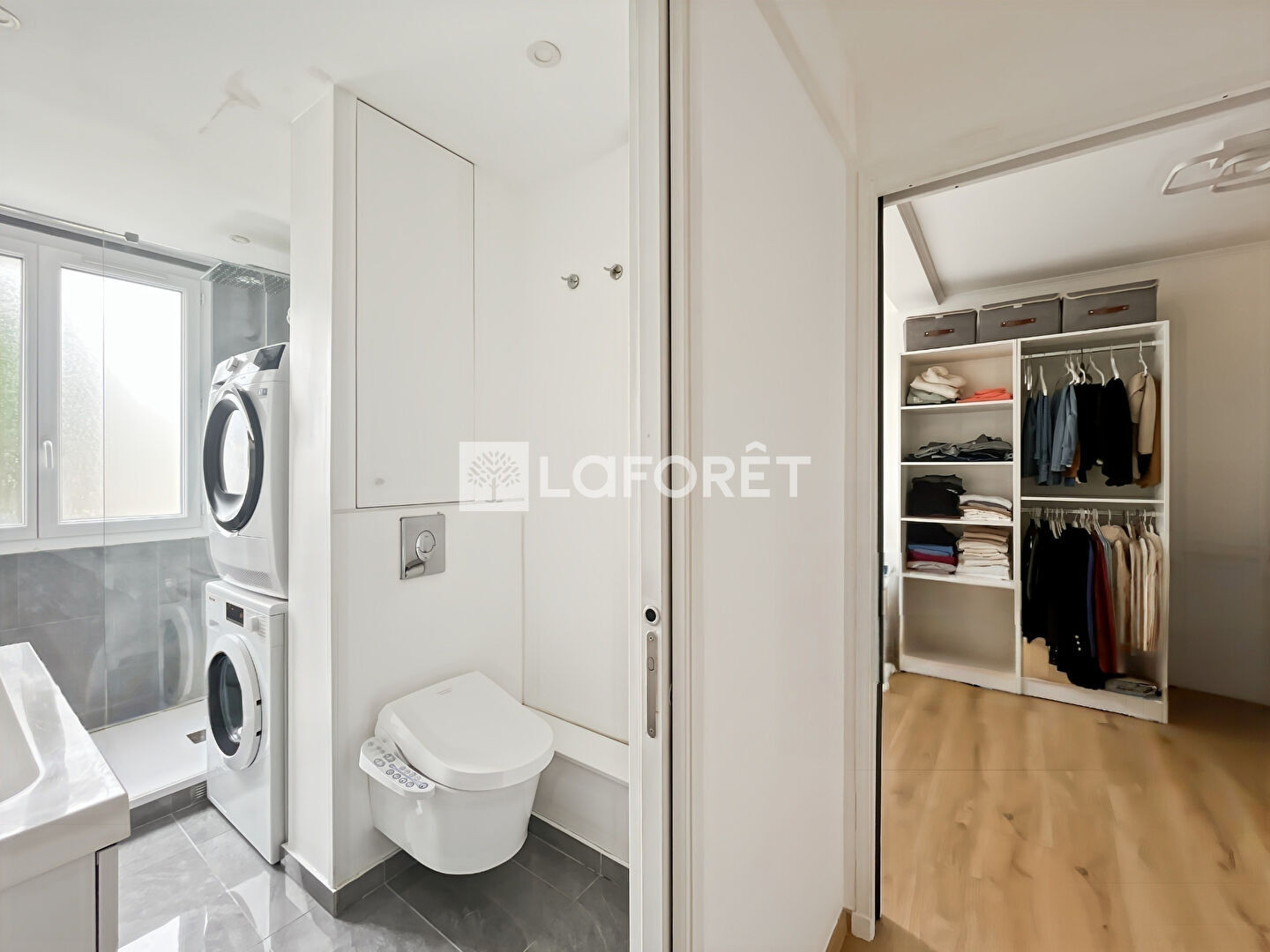 L'appartement dispose également d'une entrée, d'un dégagement, de deux chambres dont une avec dressing aménagé, ainsi que d'une salle d'eau avec WC et fenêtre.