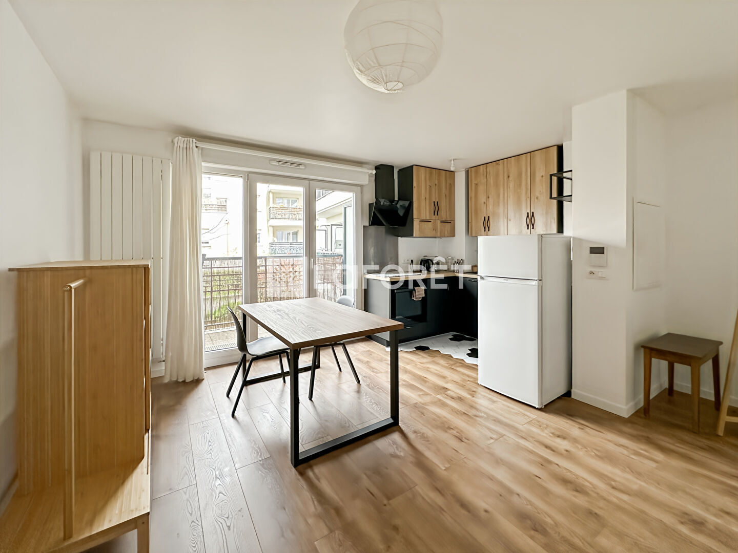 Il comprend une entrée, un séjour avec cuisine ouverte aménagée et équipée, un balcon, une chambre avec placard et une salle d'eau avec WC. Chaudière individuelle au gaz (chauffage et eau chaude). Le logement est loué meublé, disponible immédiatement.