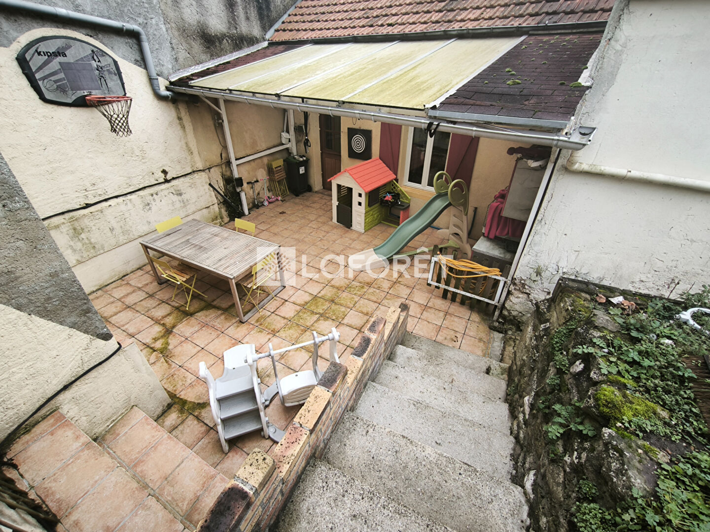 Pour des moments conviviaux, une terrasse couverte à l'abris des regards et un jardin sont compris dans la vente.