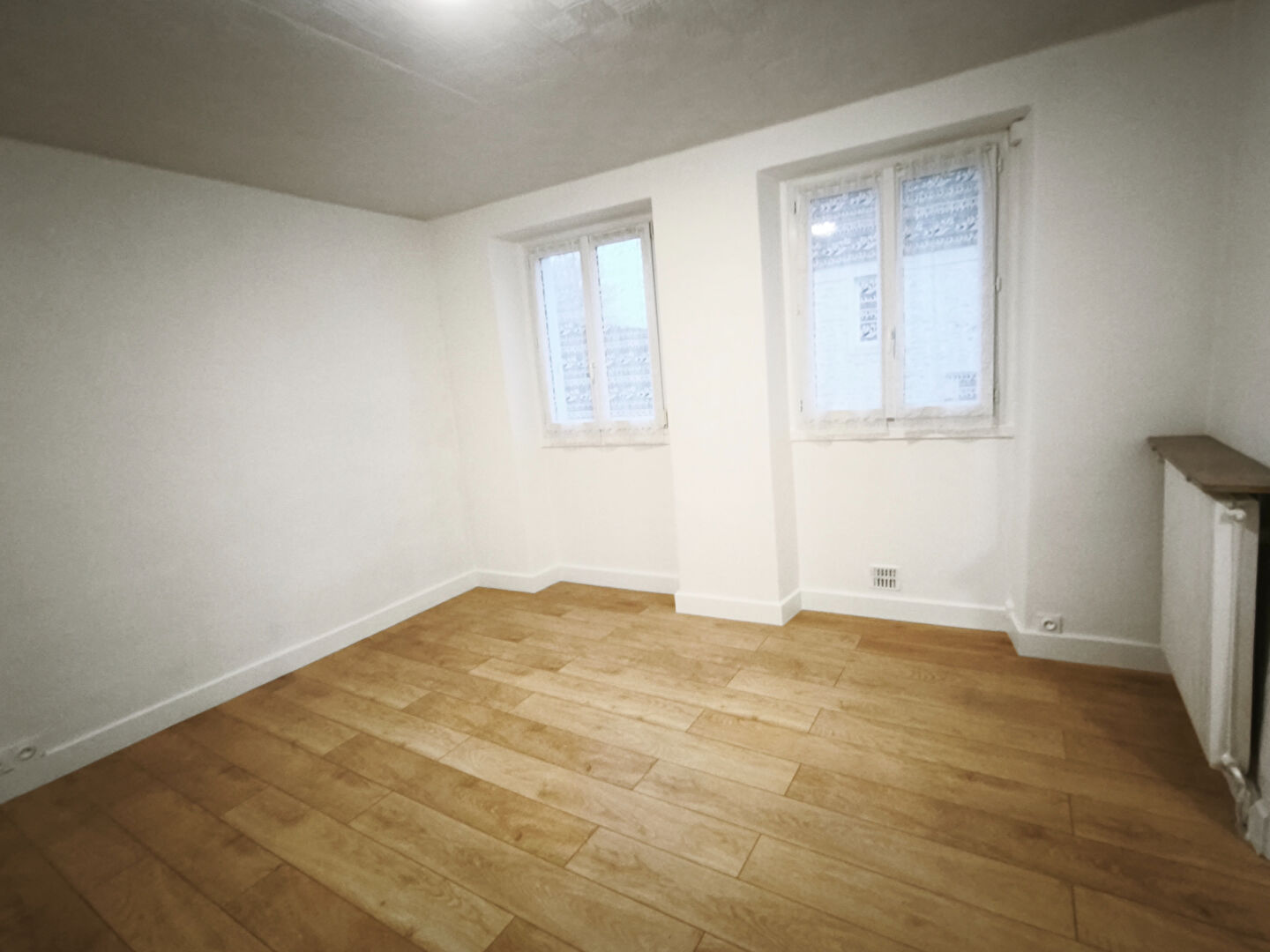 Dans charmant village situé à 10 minutes de Mantes , maison divisée en deux cet appartement situé au rez-de-chaussée venant d'être refait et comprenant : un séjour, une cuisine aménagée et semi équipée (plaque + hotte), dégagement avec placard, deux chambres, salle d'eau et wc séparé. Un emplacement de stationnement privatif sous porche, un espace lingerie et une cour en commun.