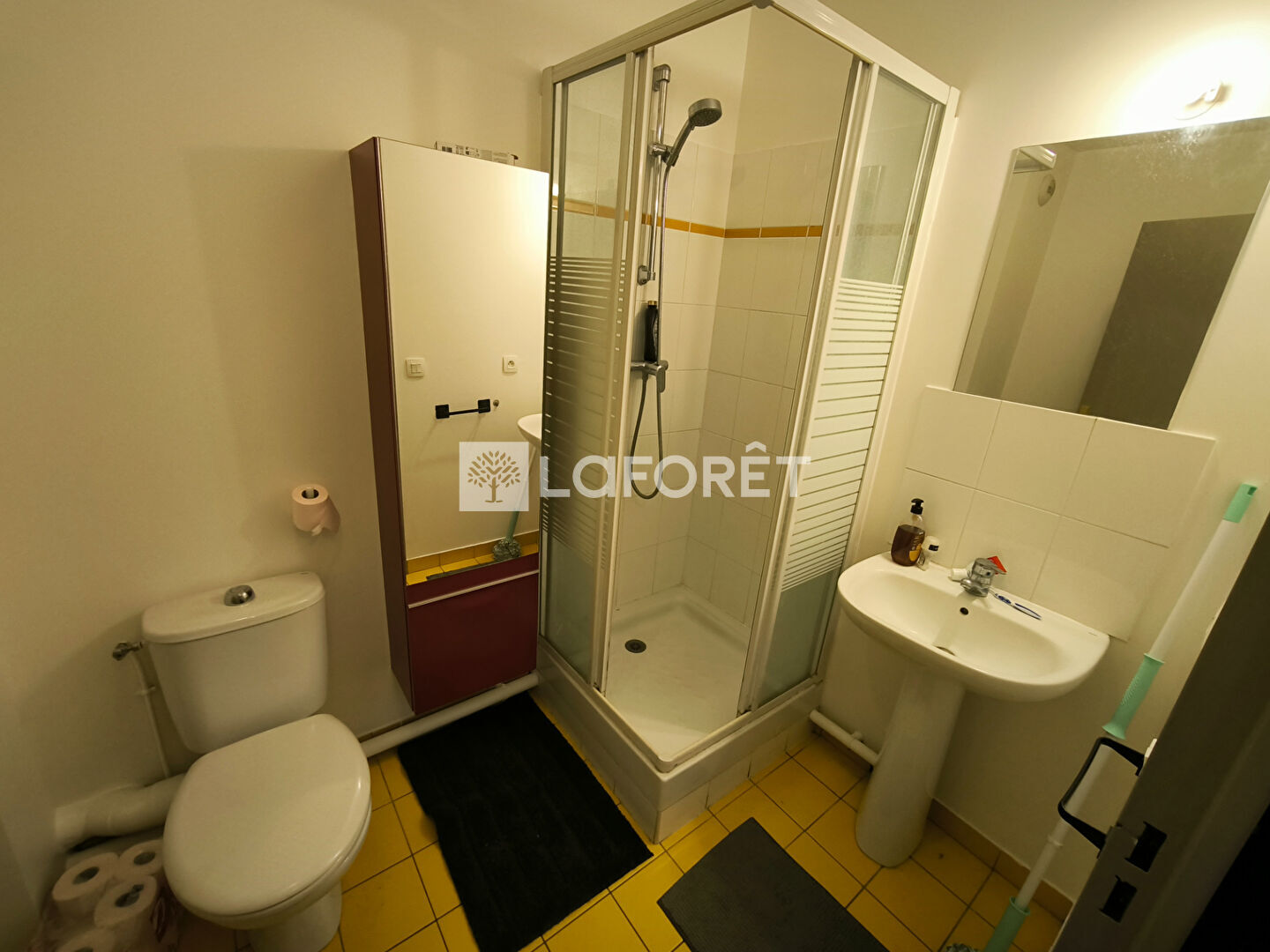 A 3 minutes à pied de la grande gare de Mantes-la-Jolie et future gare RER EOLE, dans résidence récente et de standing, appartement de type studio comprenant: entrée avec placard, séjour meublé avec coin cuisine aménagée et équipée (plaque et frigo), salle d'eau avec WC.