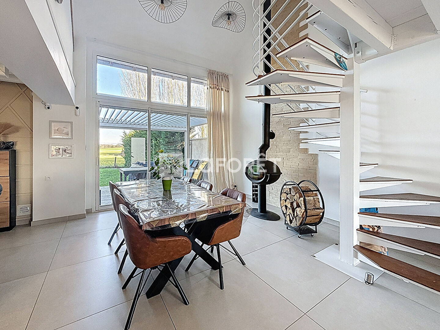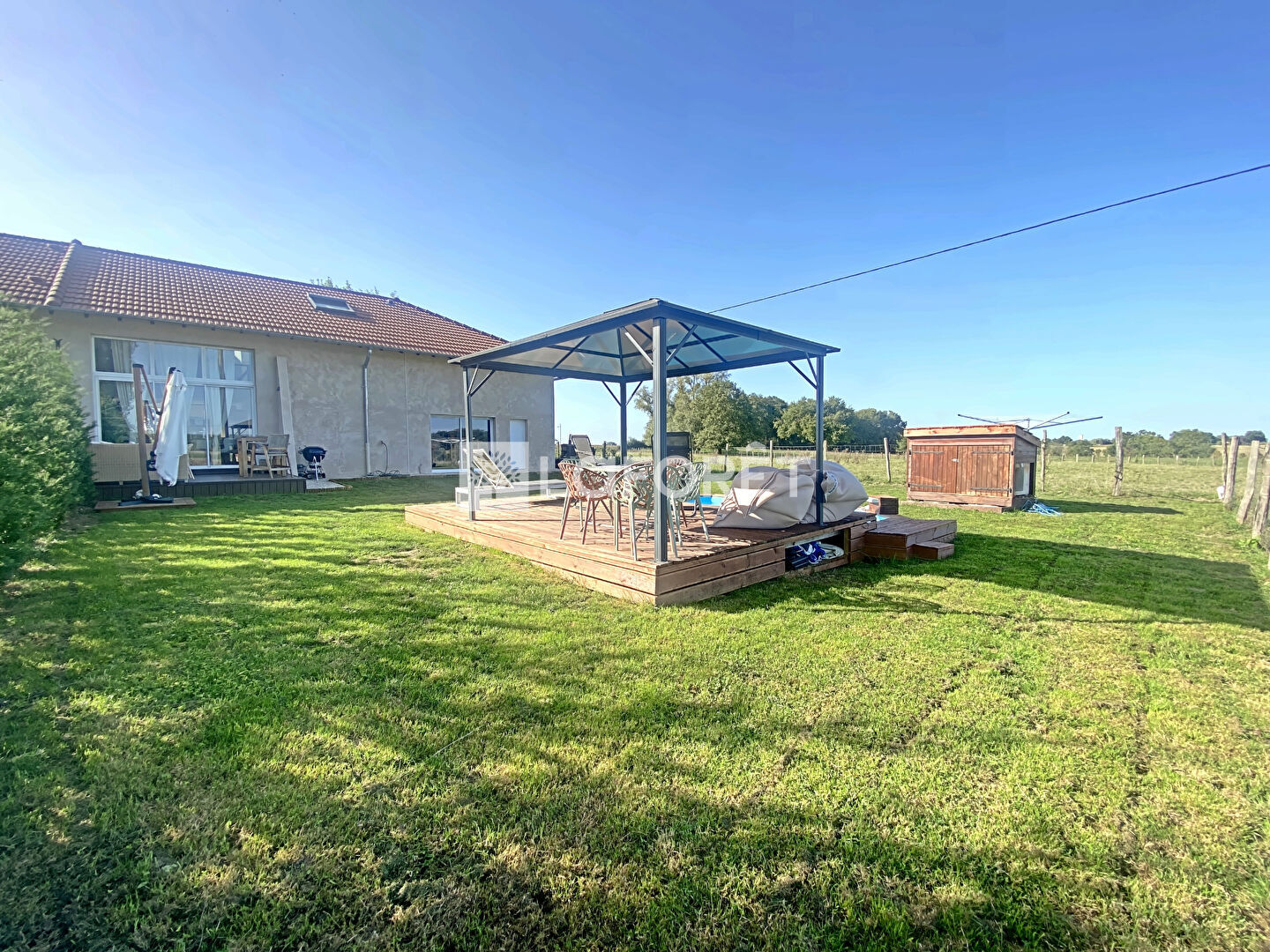 Sur un terrain d'environ 860 m² clos et entouré par les champs, profitez d'un environnement calme et paisible. L'extérieur dispose d'une terrasse avec pergola bioclimatique, d'une piscine semi-enterrée et d'un garage avec porte motorisée.