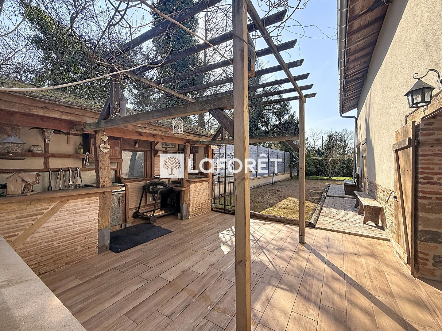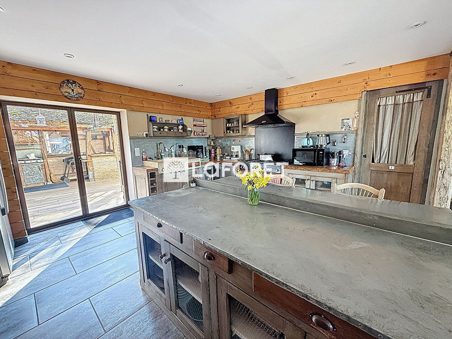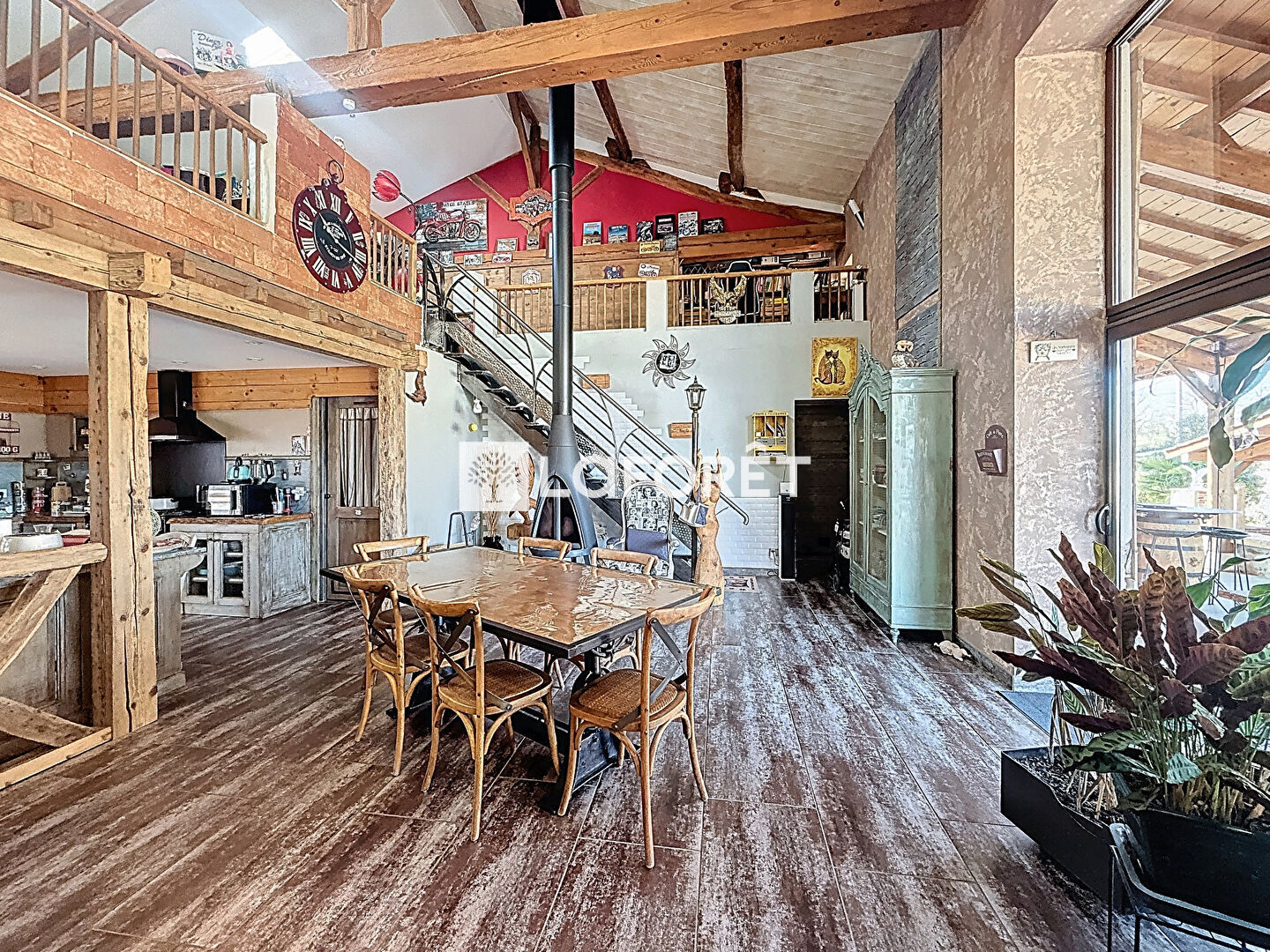 Dès l'entrée, la maison dévoile des volumes généreux et une atmosphère chaleureuse. Le séjour cathédrale, baigné de lumière, constitue la pièce maîtresse de la maison et s'ouvre sur une cuisine équipée conviviale, idéale pour recevoir. Celle-ci donne accès à une agréable cuisine d'été, parfaite pour profiter des beaux jours.