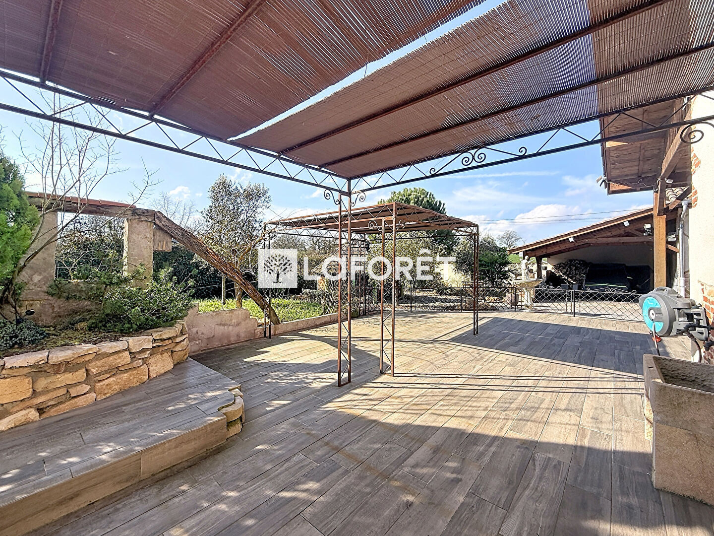 Les extérieurs, soigneusement aménagés, offrent de nombreux espaces de réception et de loisirs : Deux vastes terrasses carrelées et abritées, idéales pour les repas en extérieur. Une cuisine d'été conviviale, un terrain de pétanque pour partager des moments privilégiés, un atelier d'environ 40 m², deux garages et deux carports, dont un pouvant accueillir un camping-car.