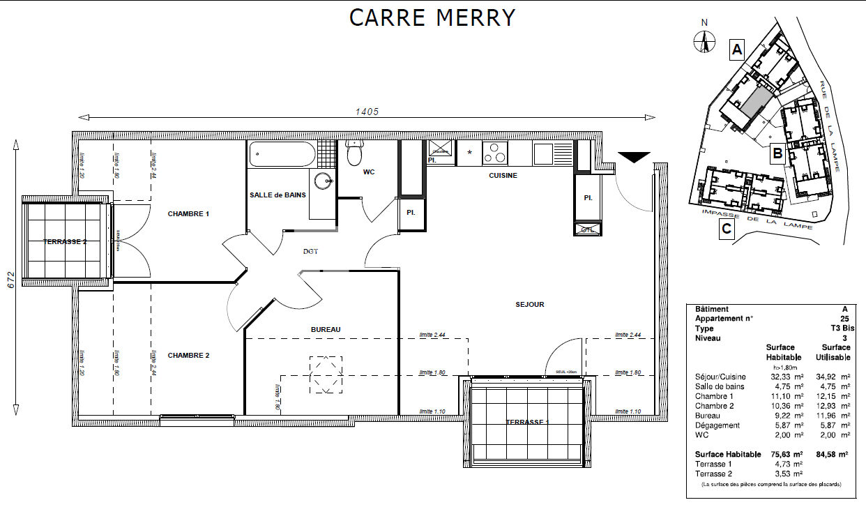 Loyer hors charges 1 053,75 € par mois, provision charges 120,00 € par mois, loyer charges comprises 1 173,75 € par mois