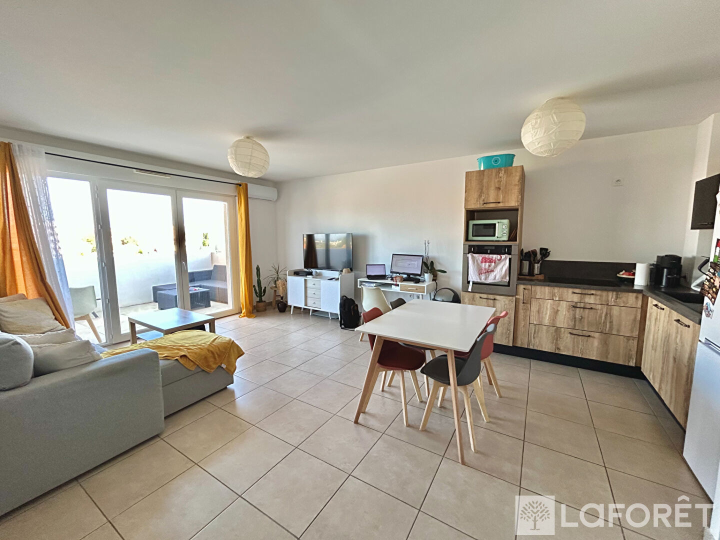 L'espace de vie se compose d'un séjour lumineux avec une cuisine ouverte entièrement aménagée et équipée. Une chambre disposant d'un placard, une salle d'eau bien agencée avec un WC. L'ensemble est soumis aux normes PMR.