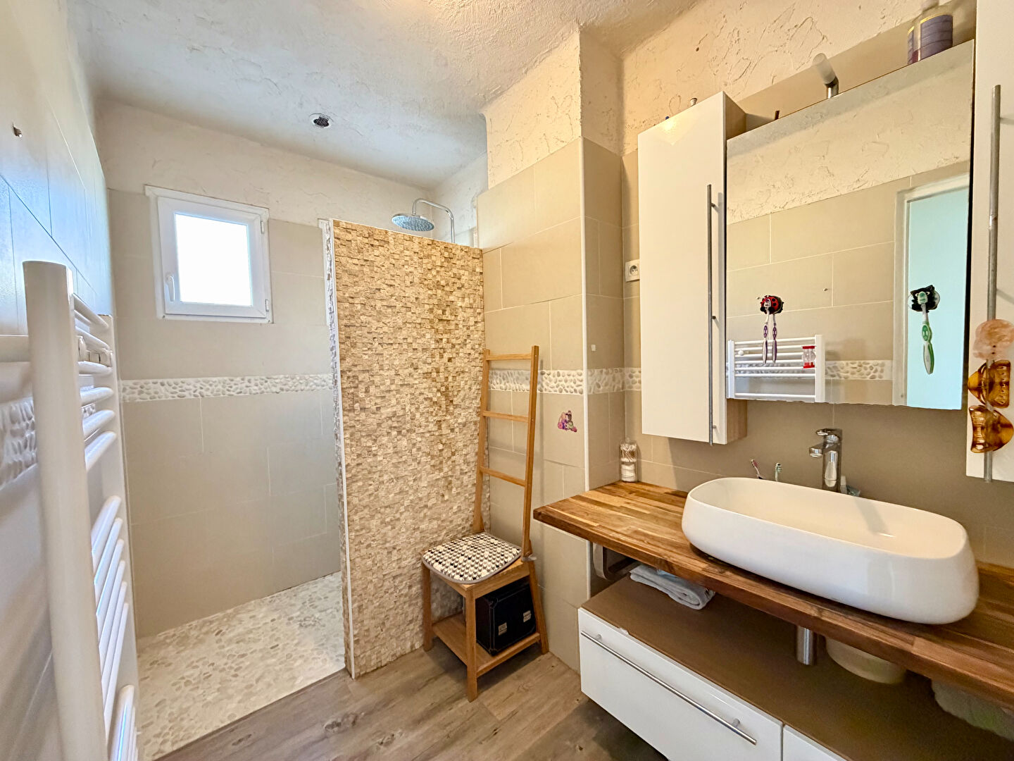 À l'étage, vous découvrirez une grande et lumineuse pièce de vie, une cuisine entièrement équipée et aménagée, une chambre supplémentaire, ainsi qu'une salle d'eau avec WC indépendant.